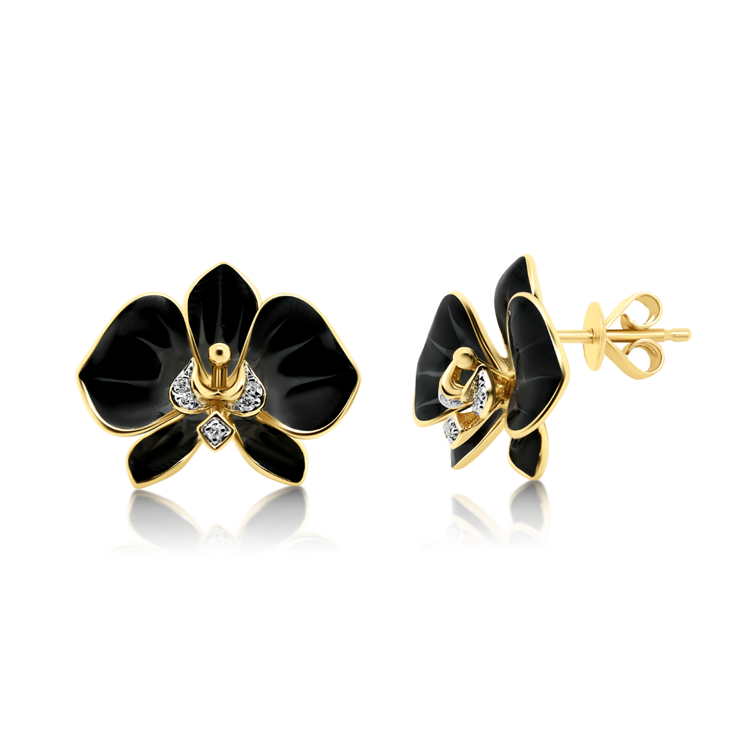 Cercei din aur galben de 18K cu Email negru de 0.167ct și 10 Diamante naturale Round Brilliant de 0.028ct.