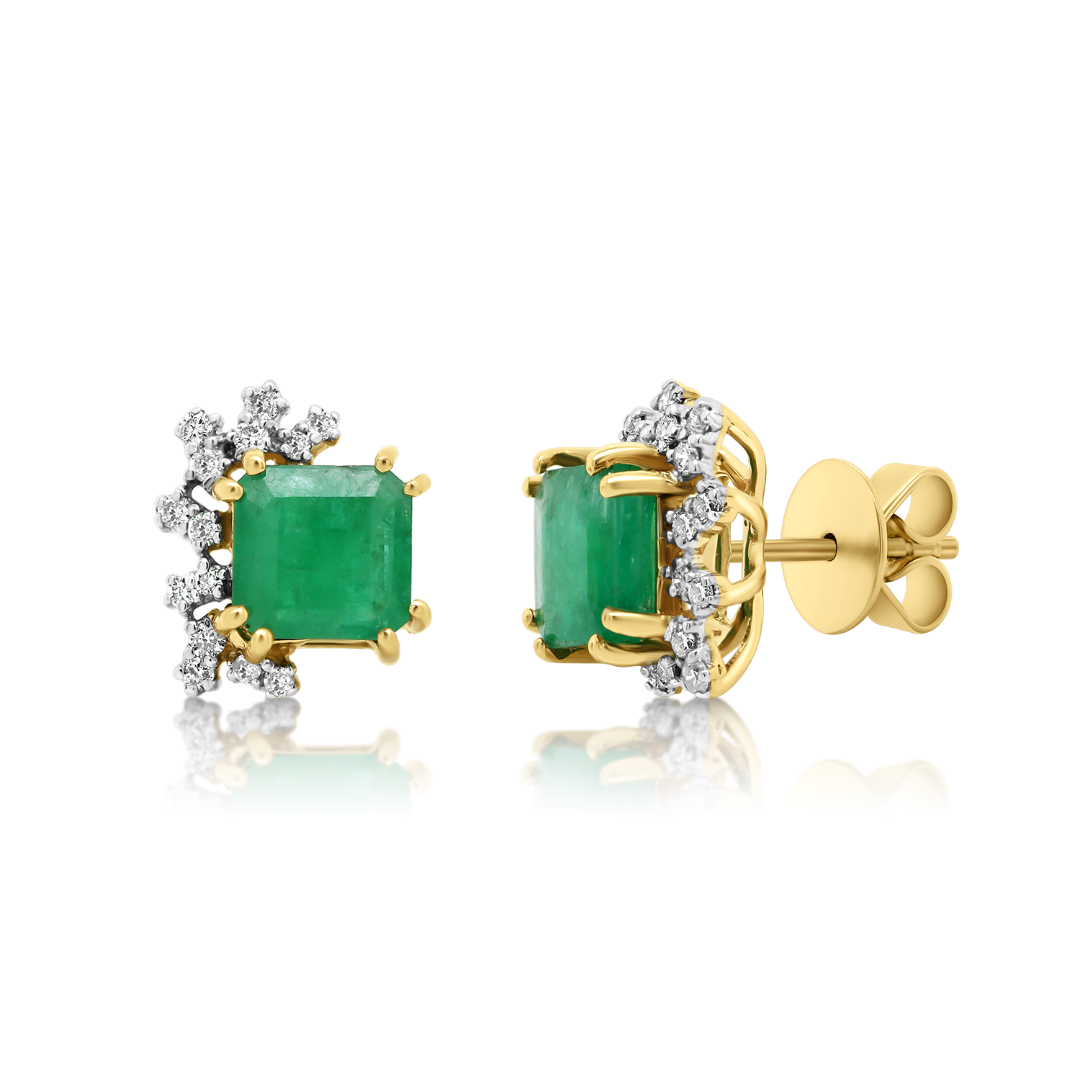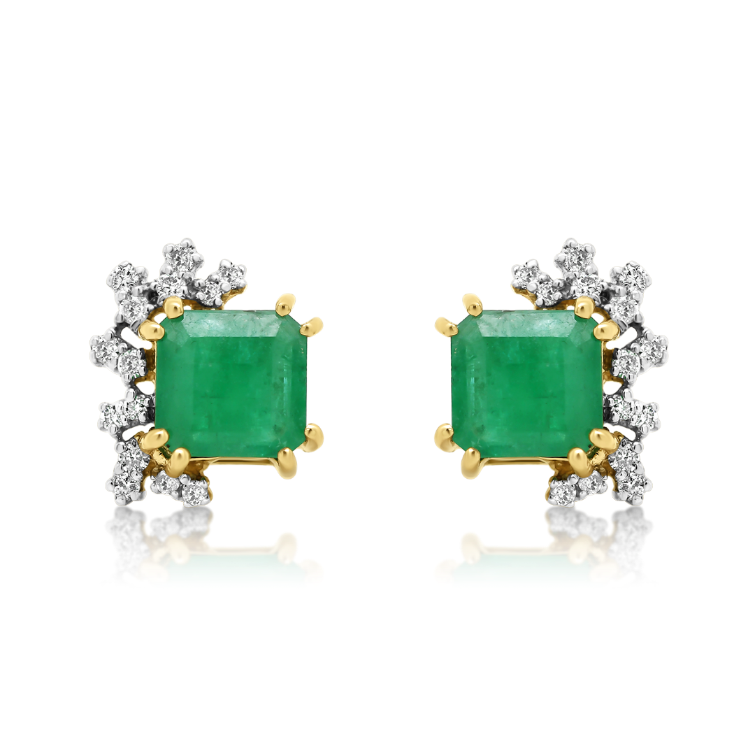 Cercei din aur galben de 18K, încrustați cu două Smaralde și Diamante naturale Brilliant cut.