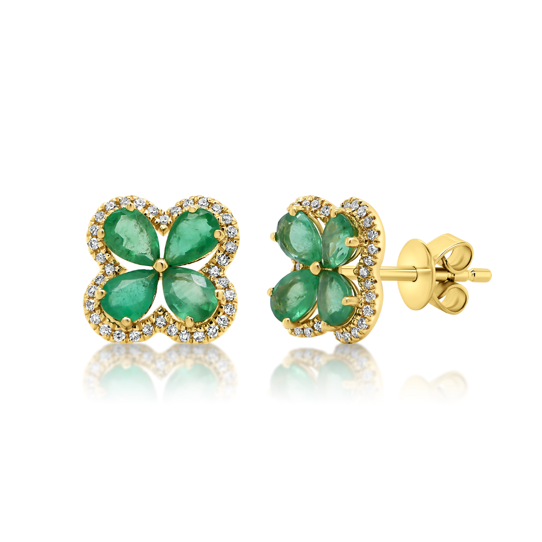 Cercei din aur galben de 18K cu Smaralde și Diamante naturale.