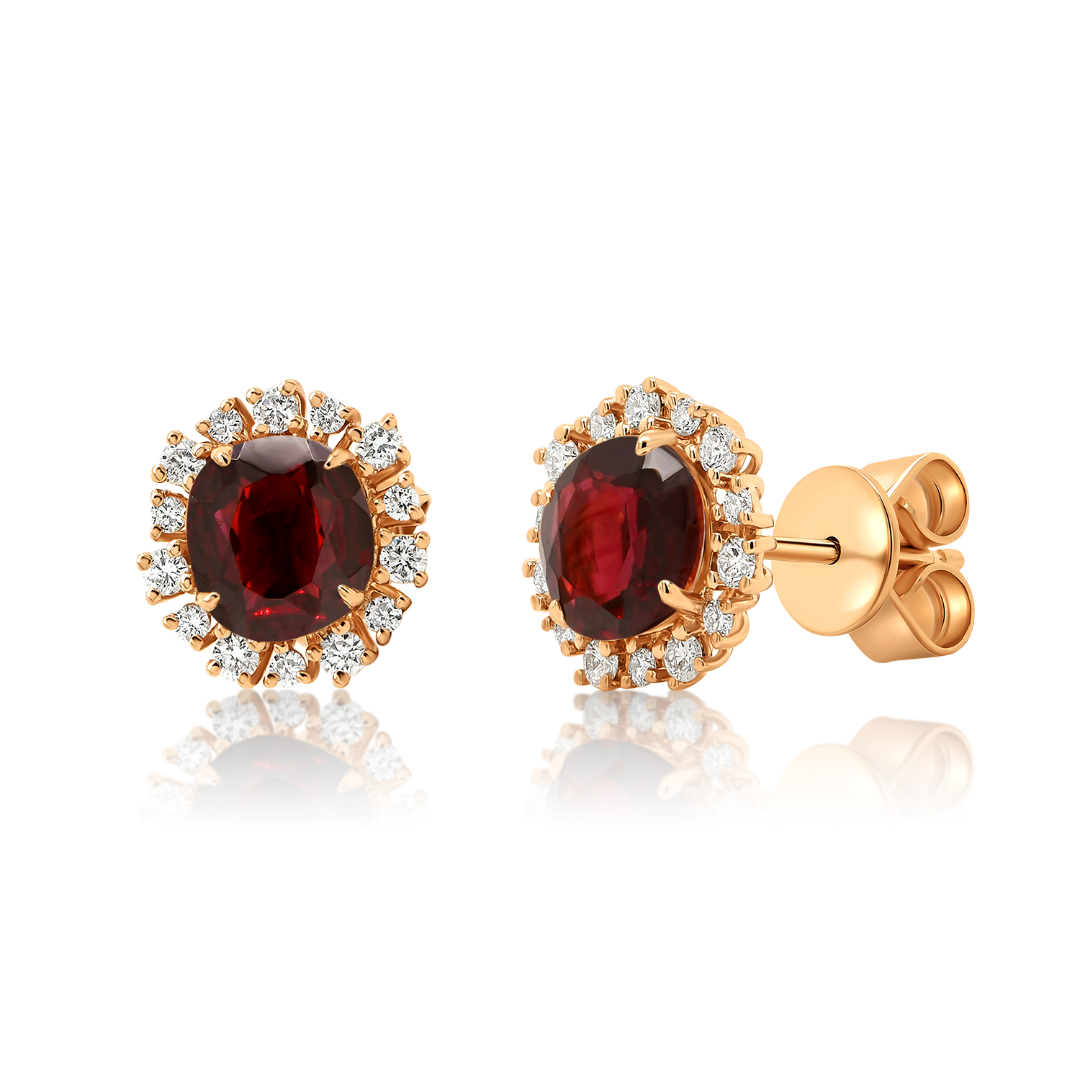 Cercei din aur roz de 18K, cu două Granate de 2.125ct și 28 de Diamante Round Brilliant de 0.296ct.