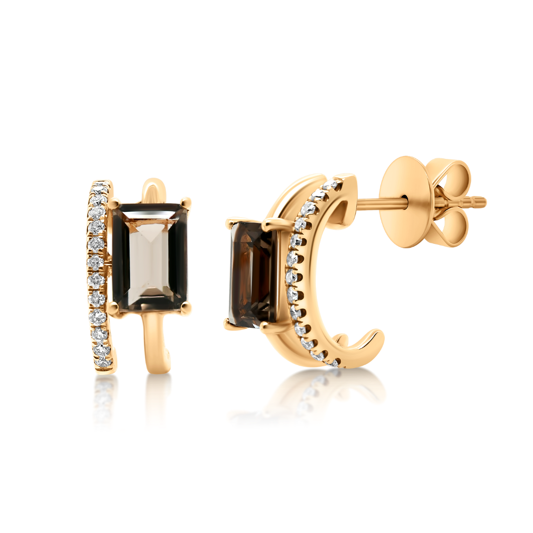 Cercei din aur roz de 18K cu Diamante naturale și Smoky Quartz.