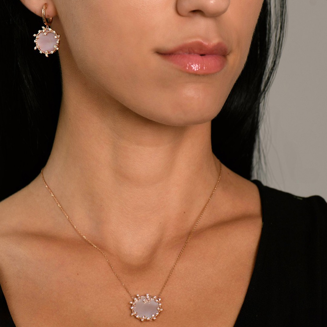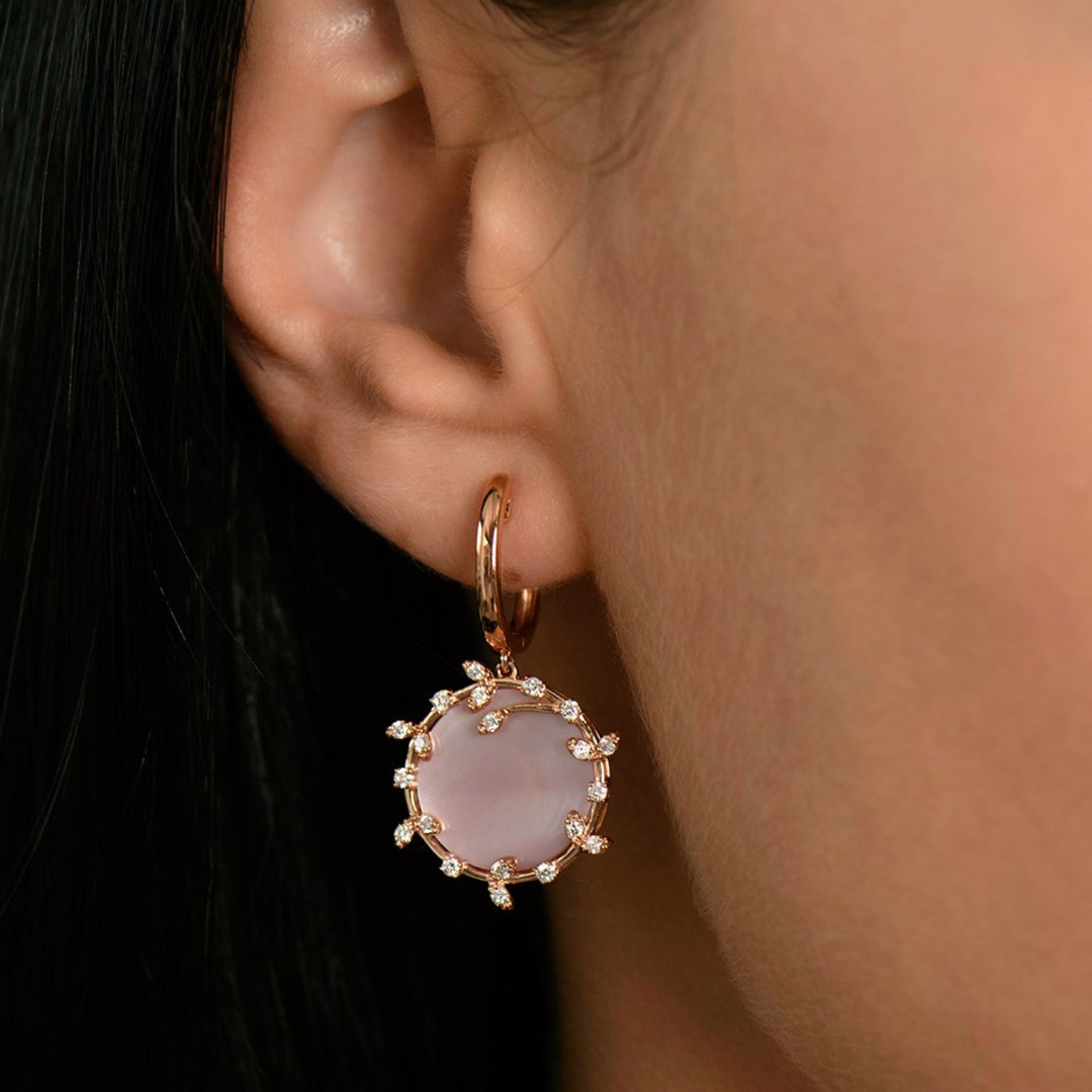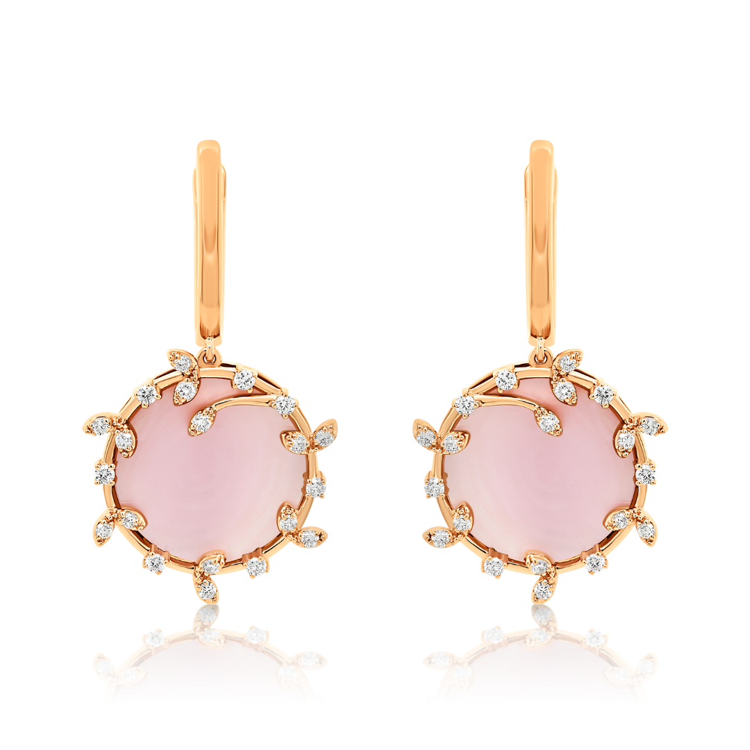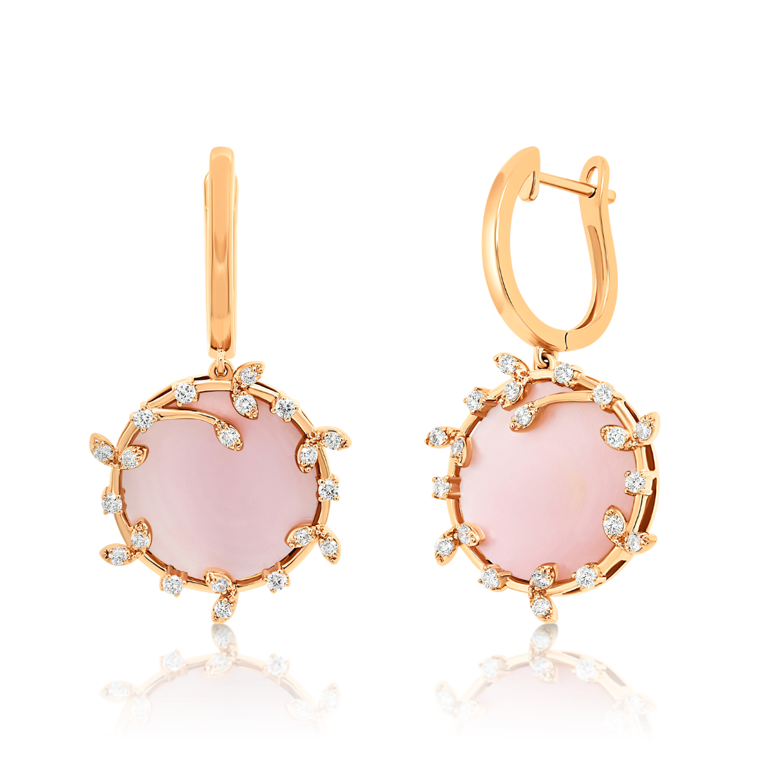 Cercei din aur roz de 18K cu Sidef de 6.70ct și 40 de Diamante naturale Brilliant cut de 0.483ct.