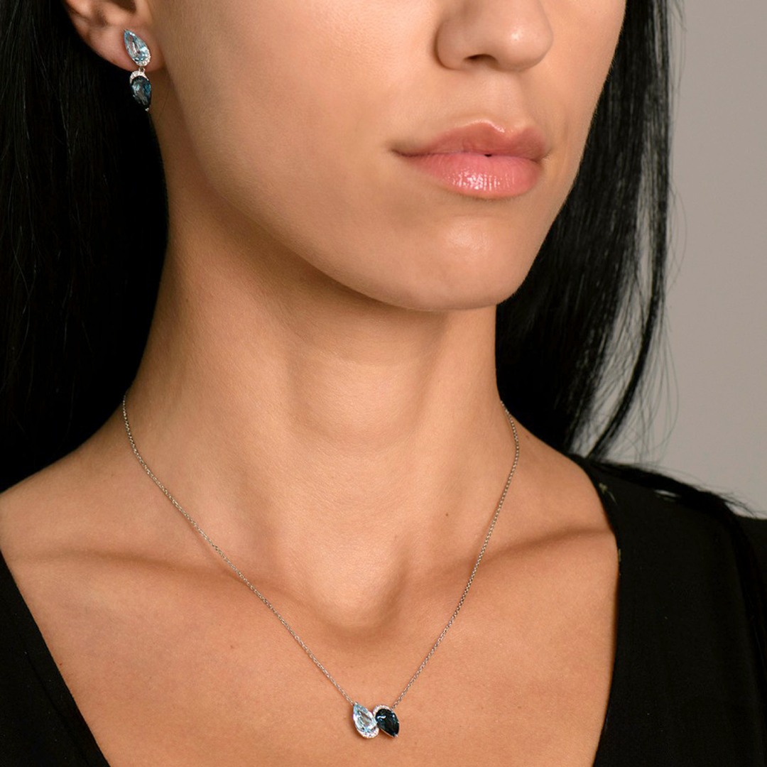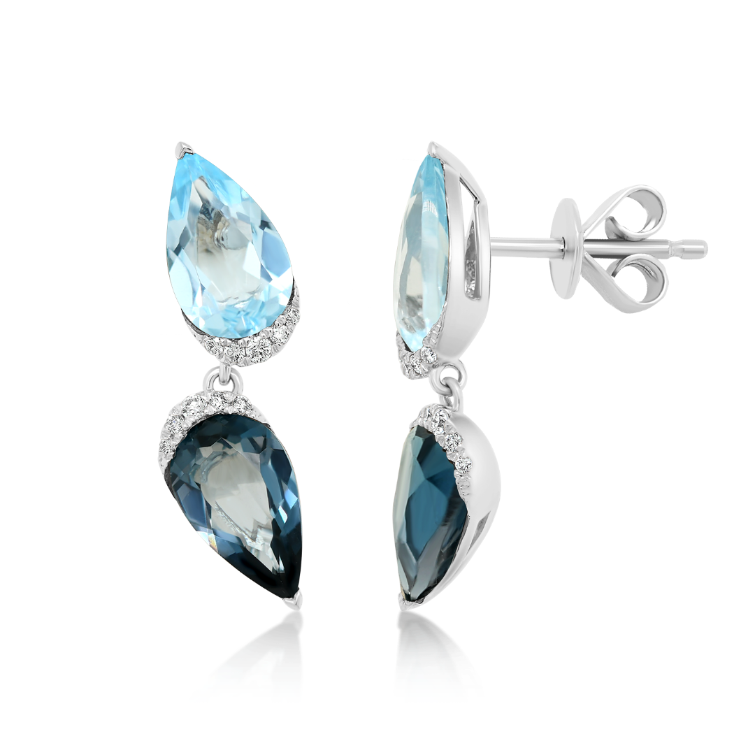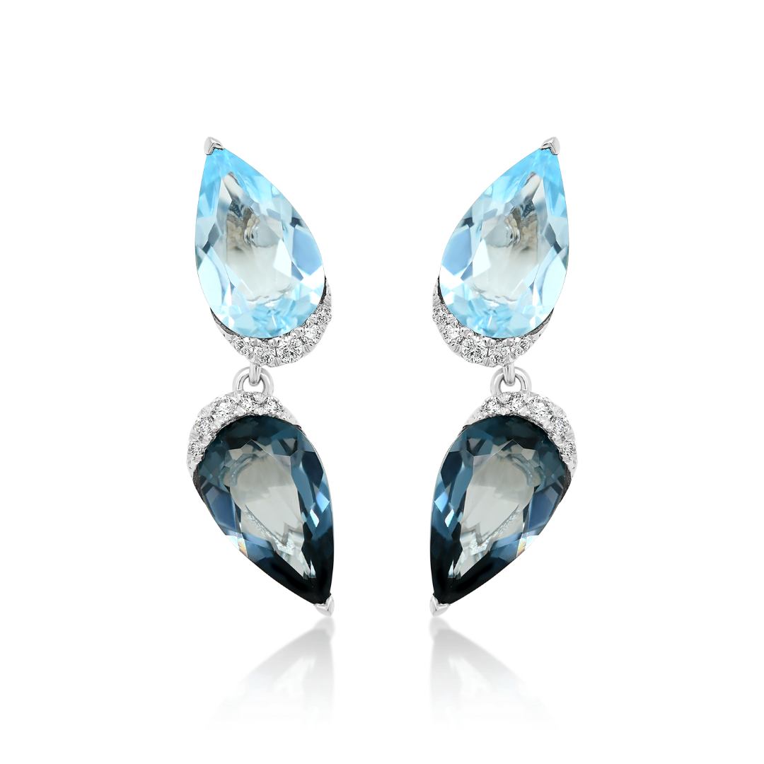 Cercei din aur alb de 18K cu 4 Topaze și 20 de Diamante naturale Round Brilliant.