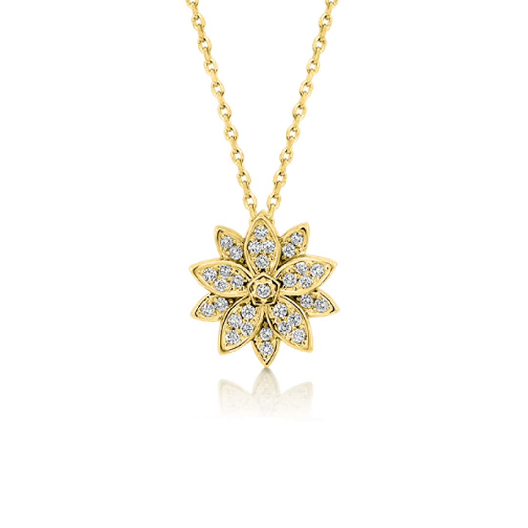 Lanț din aur galben de 18K și pandantiv cu Diamante naturale brilliant cut.