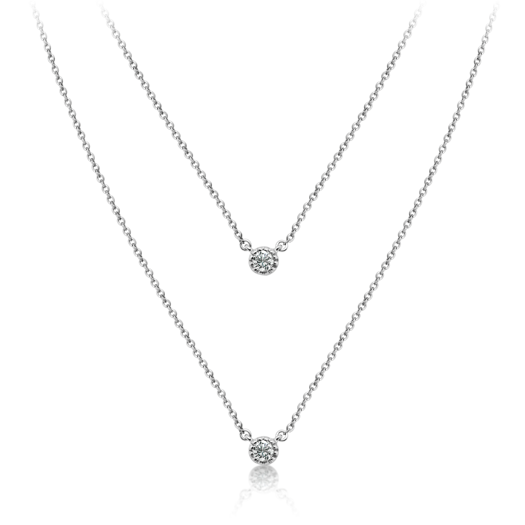 Colier din aur alb de 18K cu două Diamante naturale Round Brilliant.