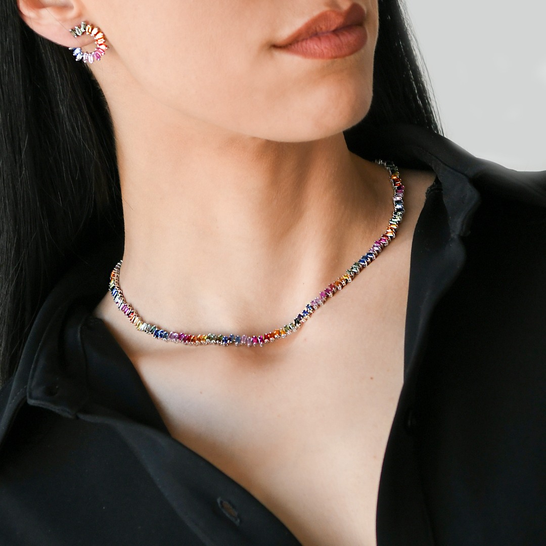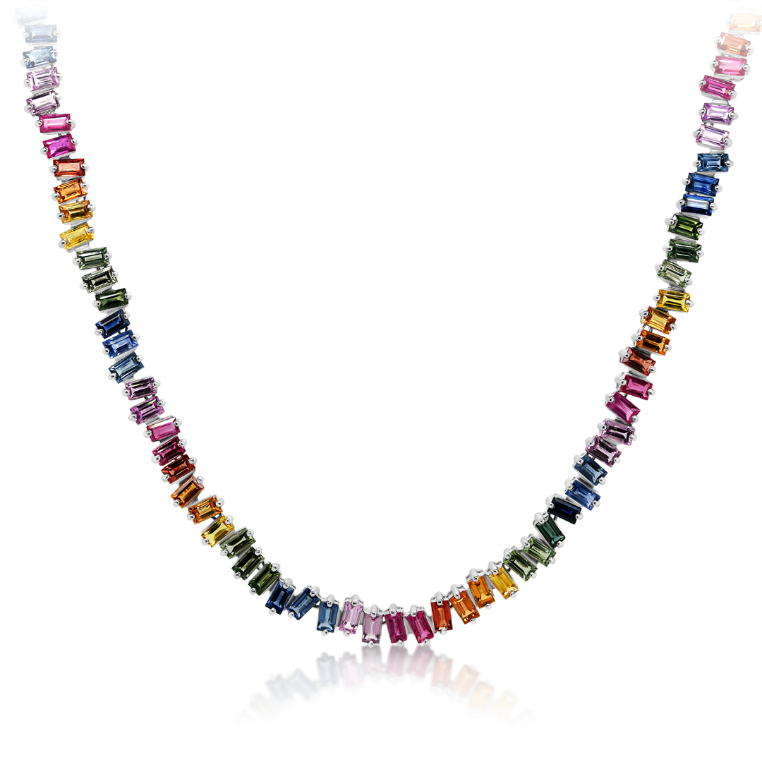 Colier din aur alb de 18K cu 162 de Safire colorate de 21.21ct.