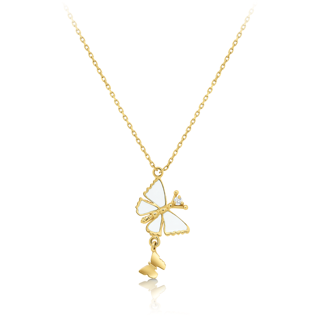 Lanț din aur galben de 18K și pandantiv cu Diamant natural și Email alb.