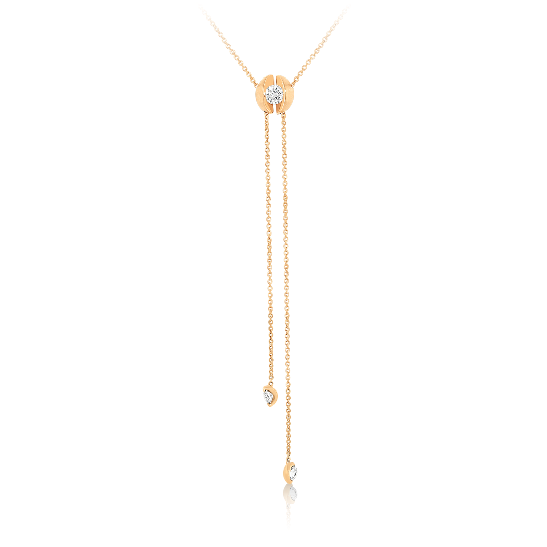 Colier din aur roz de 18K cu 3 Diamante naturale Round Brilliant de 0.32ct.
