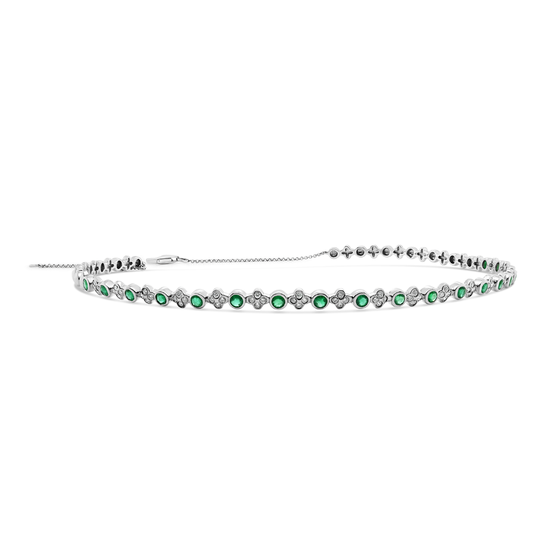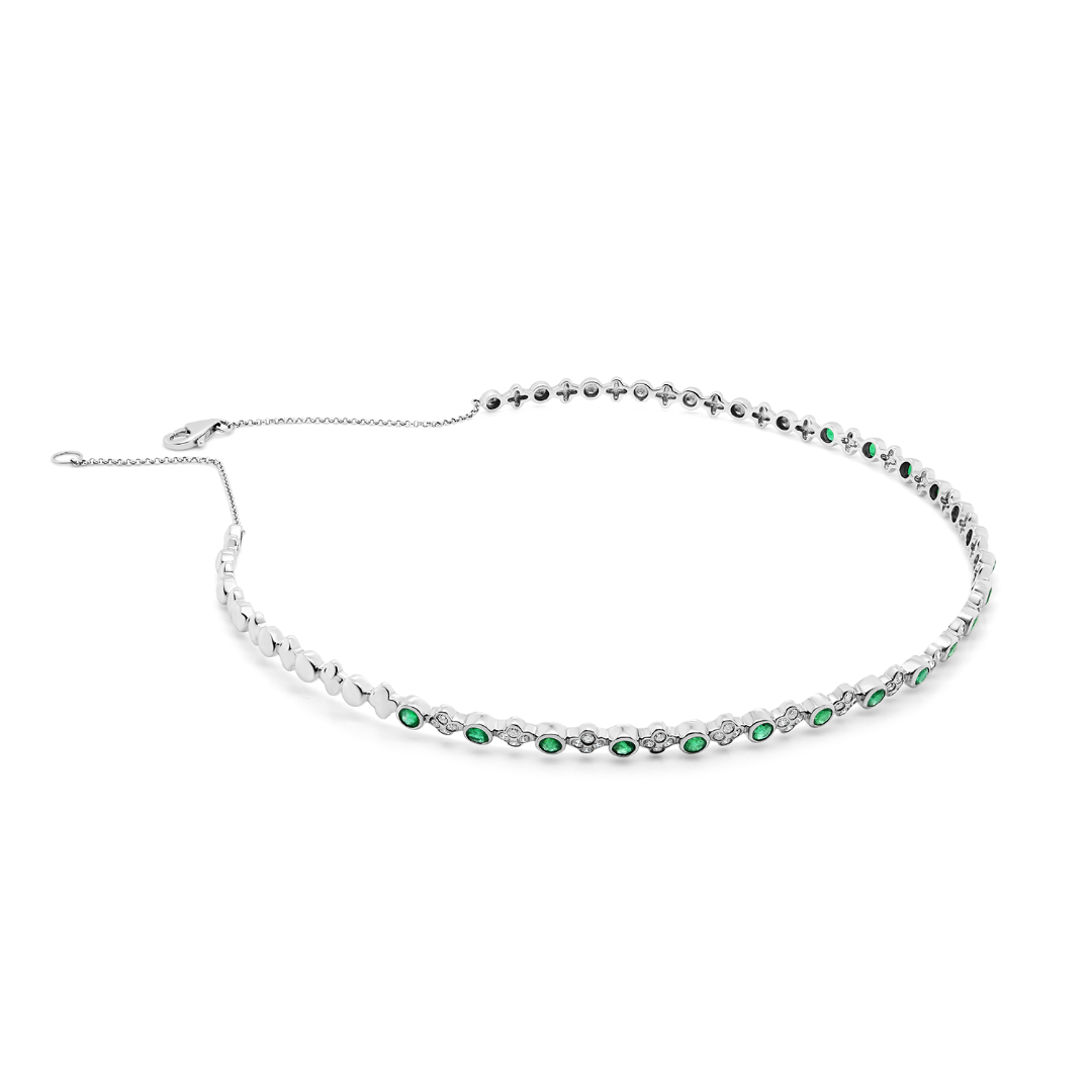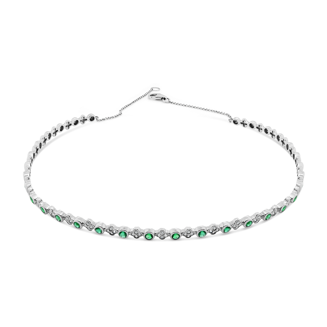 Colier fix la baza gâtului din aur alb de 18K, încrustat cu Smaralde de 1.23ct și Diamante naturale Round Brilliant de 1.84ct.