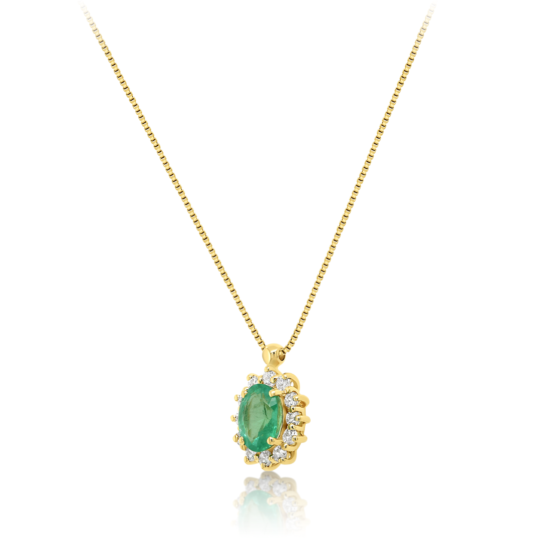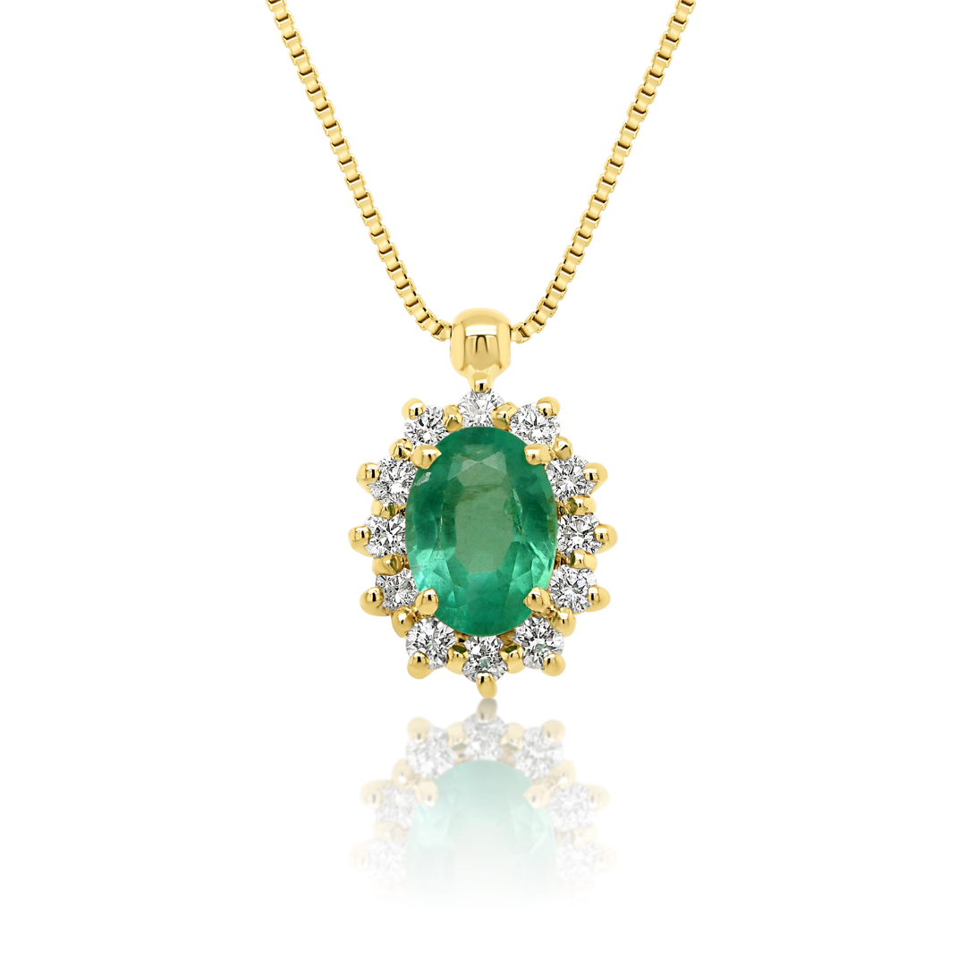 Lanț din aur galben de 18K și pandantiv cu Smarald și 12 Diamante naturale.
