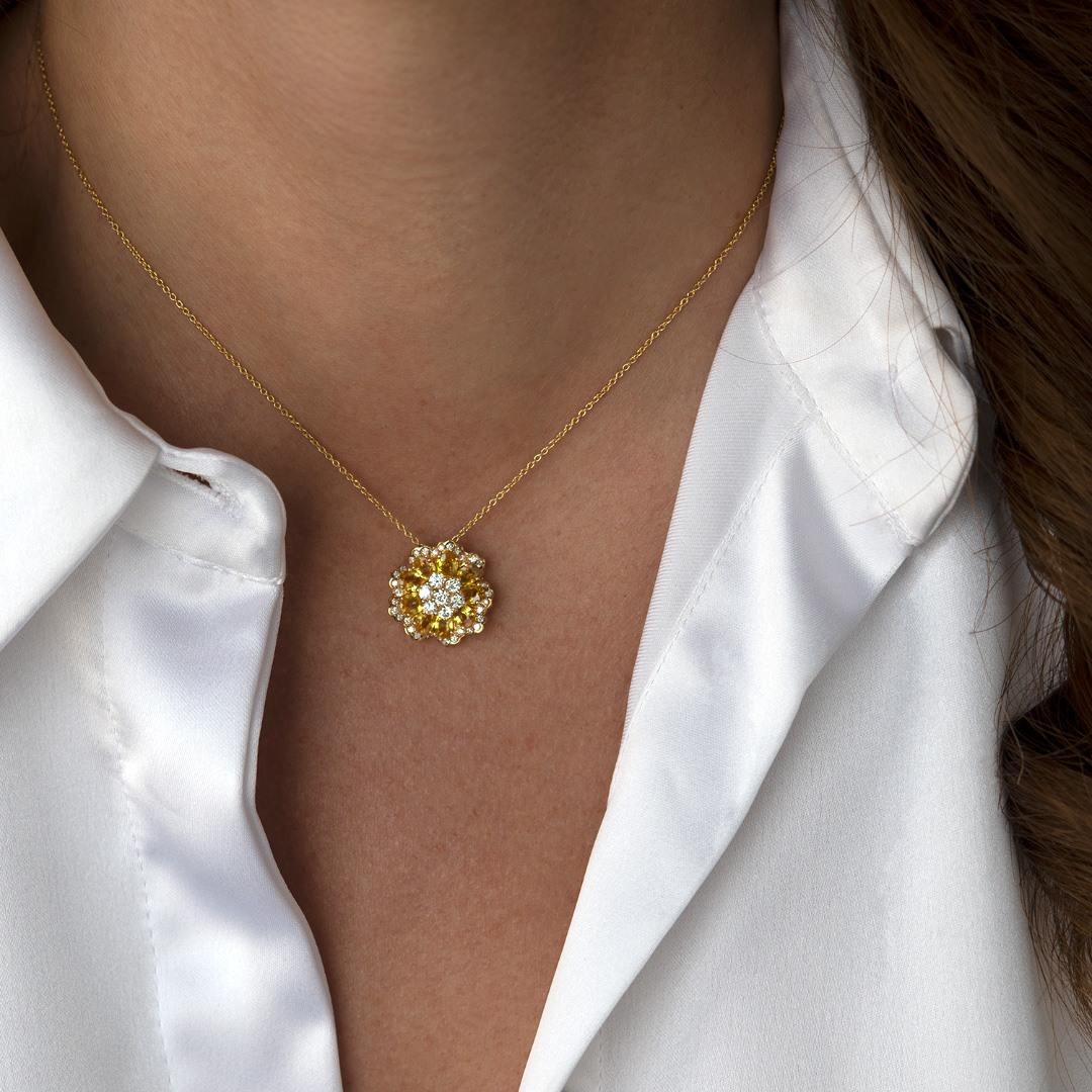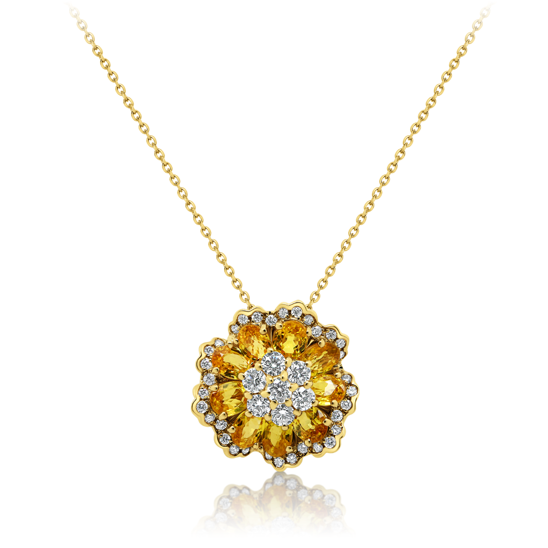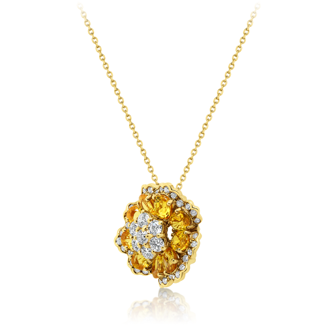Lanț cu pandantiv din aur galben de 18K, cu Safire Fancy și Diamante naturale.