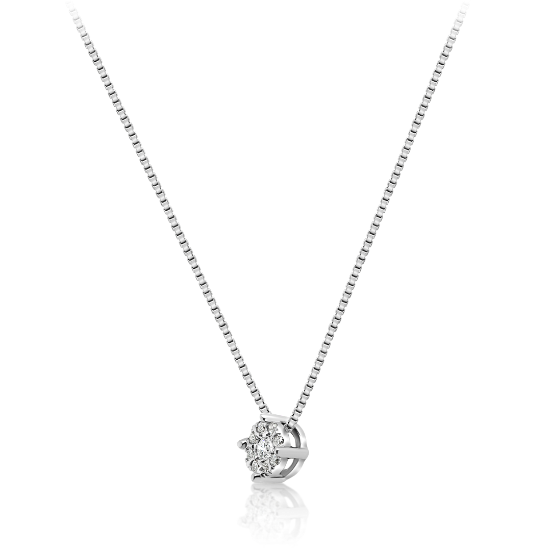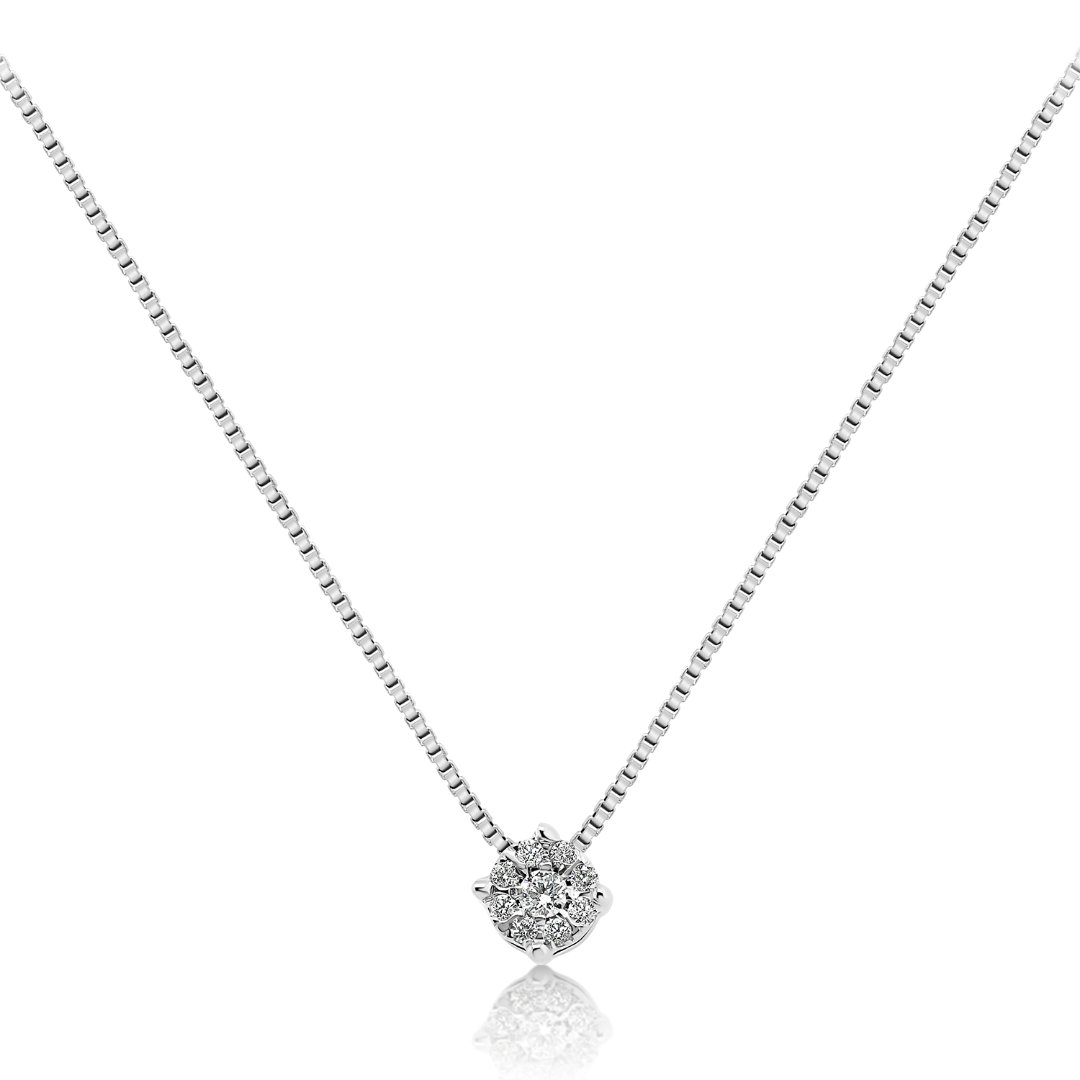 Lanț din aur alb de 14K și pandantiv cu Diamante naturale Round Brilliant.