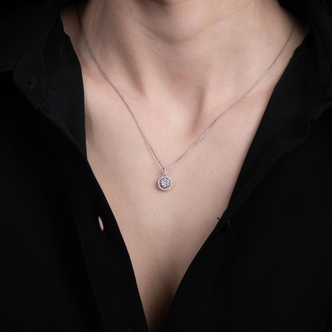 Lanț din aur alb de 14K și pandantiv cu Diamante naturale de 0.352ct.