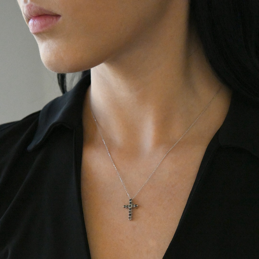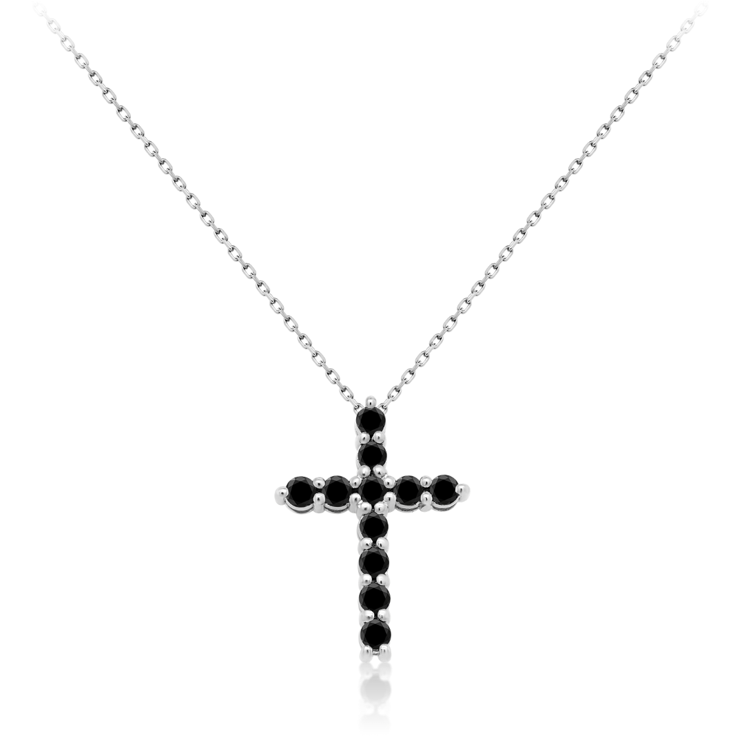Lanț din aur alb de 18K și pandantiv cruce cu Diamante negre naturale.