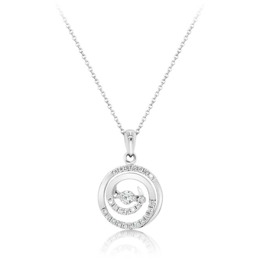 Lanț din aur alb de 18K și pandantiv încrustat cu 26 de Diamante naturale Round Brilliant de 0.21ct.
