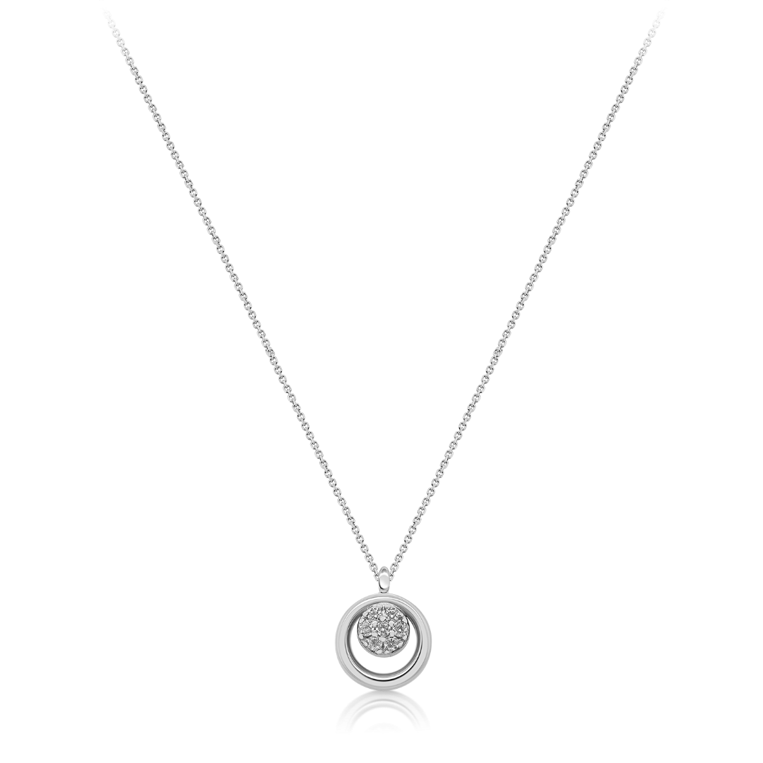 Lanț din aur alb de 18K și pandantiv cu Diamante naturale Round Brilliant.
