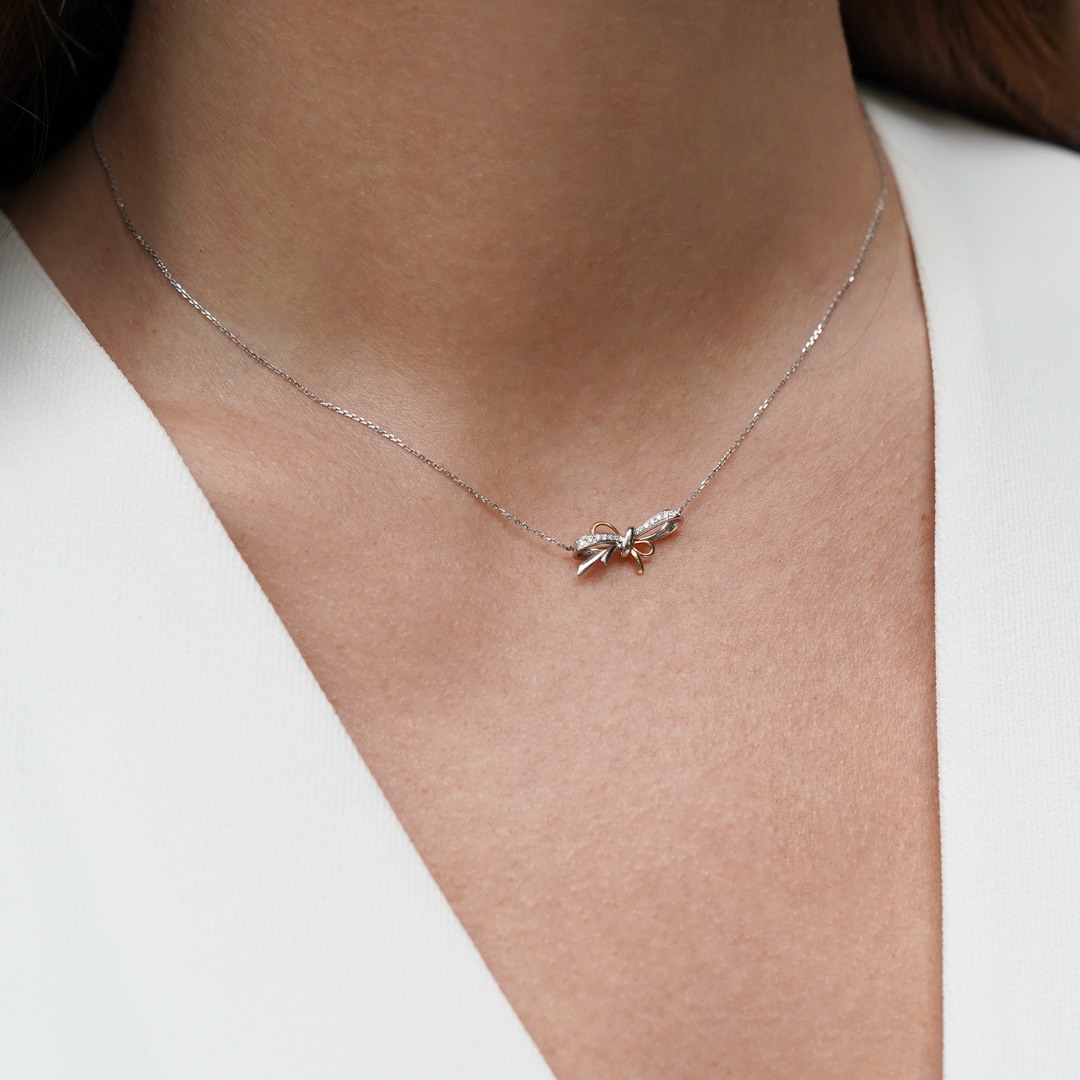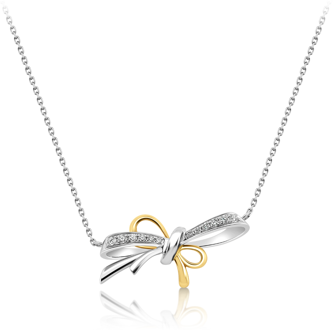 Lanț din aur alb de 18K și pandantiv cu Diamante naturale round brilliant de 0.08ct.