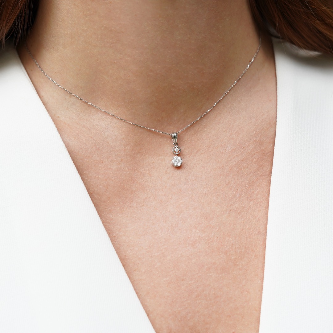 Lanț din aur alb de 18K și pandantiv cu Diamante naturale round brilliant de 0.29ct.