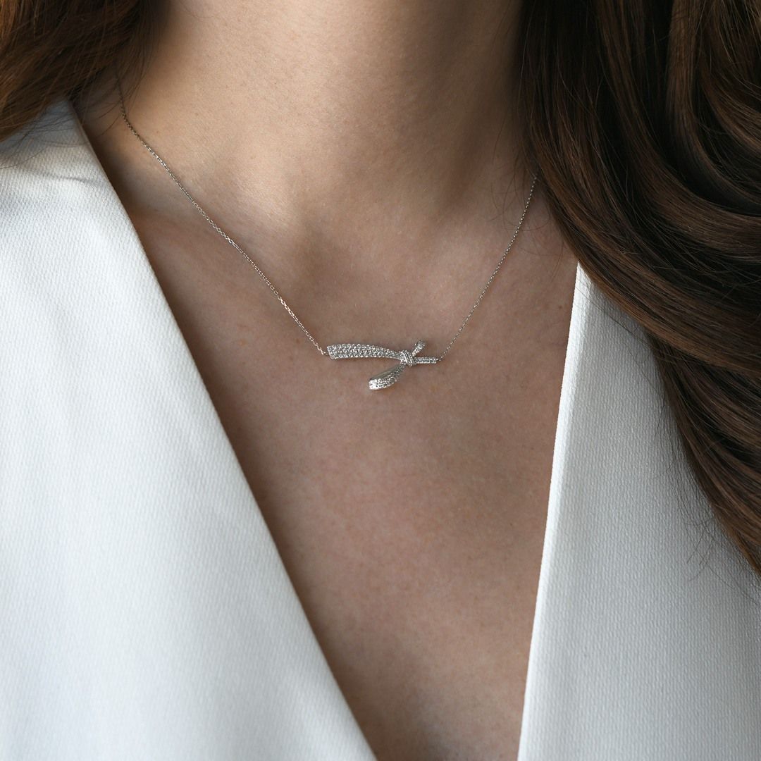 Lanț din aur alb de 18K și pandantiv cu Diamante Round Brilliant naturale.