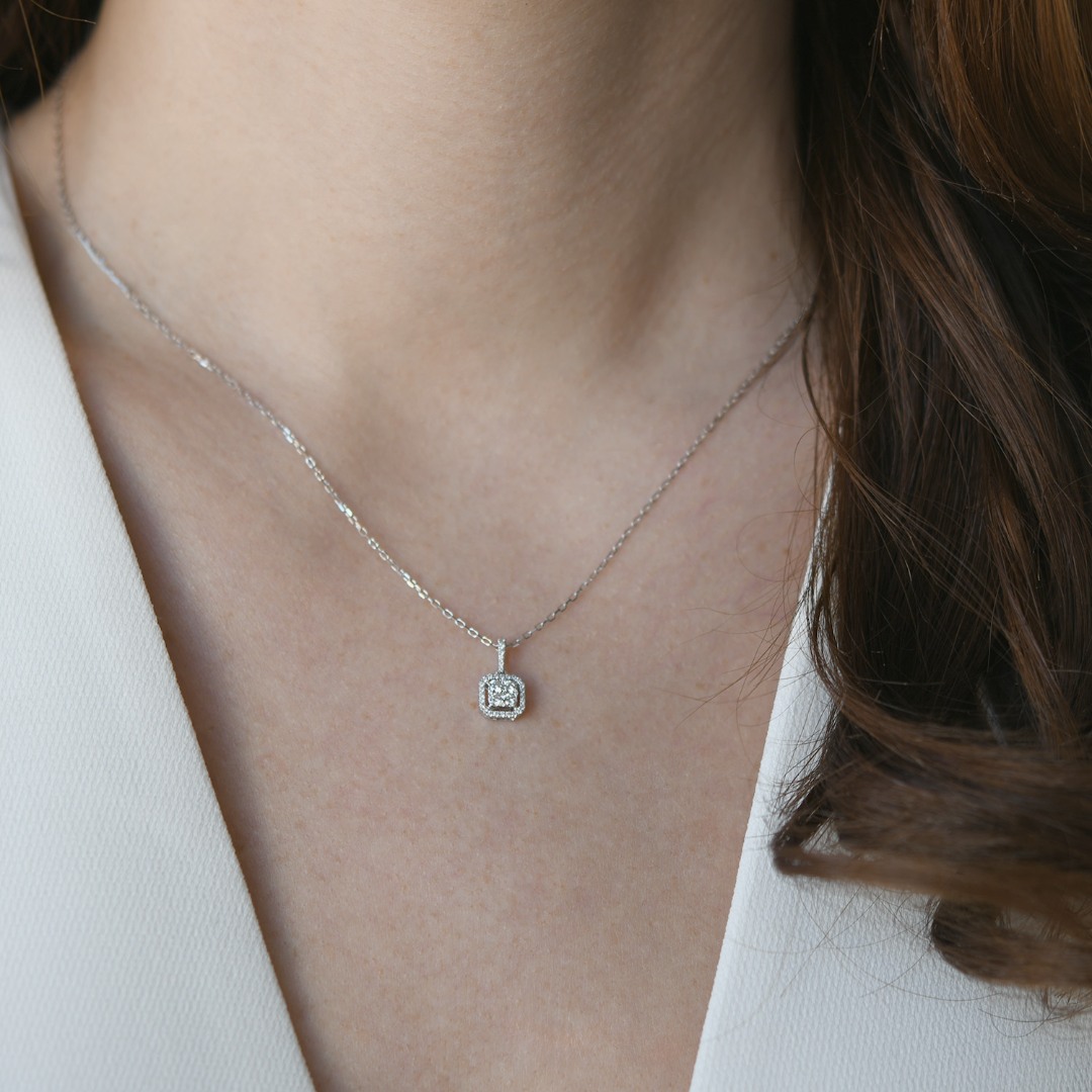 Lanț din aur alb de 18K și pandantiv încrustat cu 39 de Diamante naturale Brilliant cut de 0.274ct.
