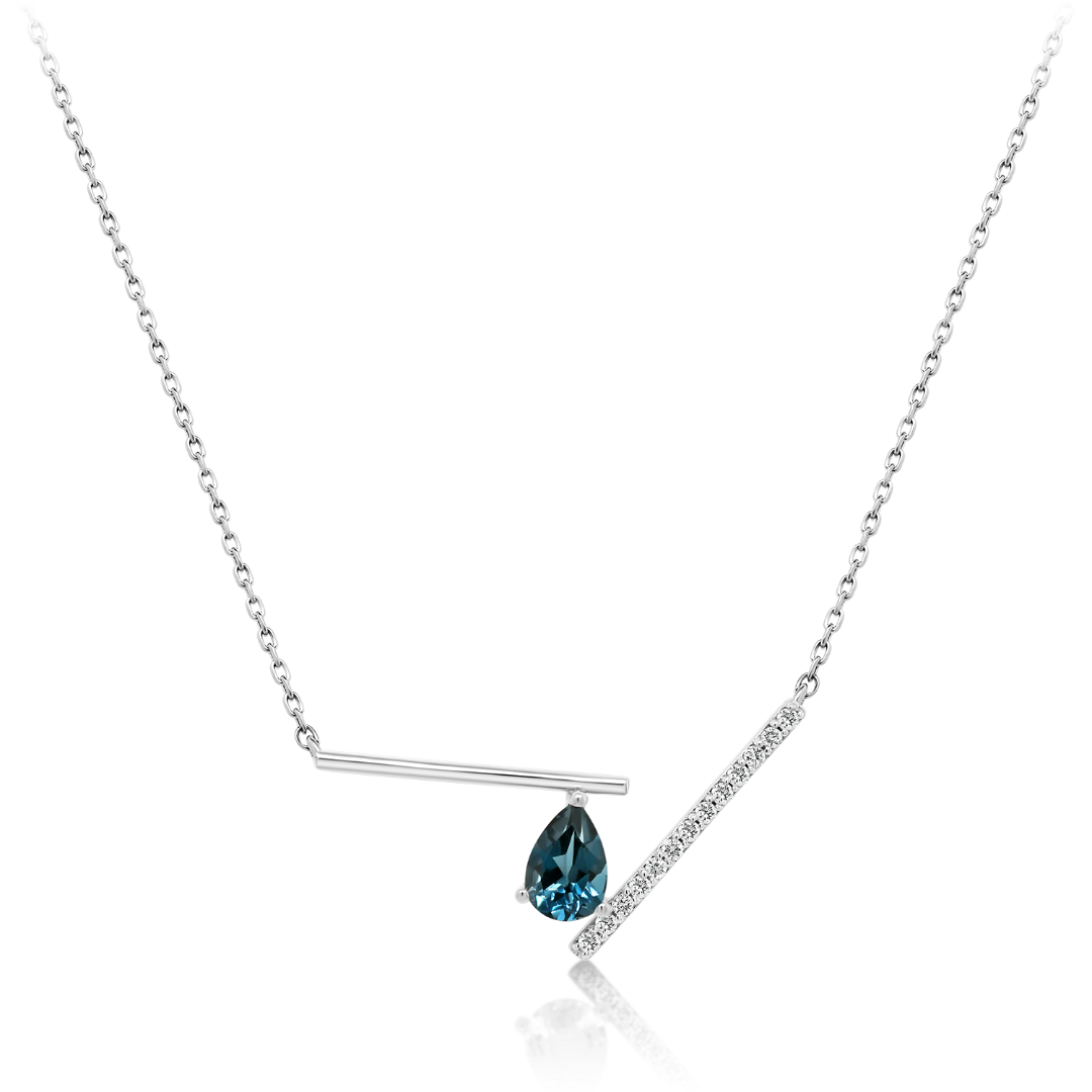 Lanț din aur alb de 18K și pandantiv cu London Blue Topaz și Diamante Brilliant cut.