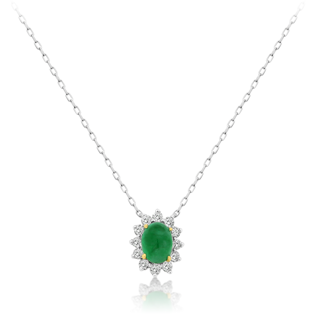 Lanț din aur alb de 18K și pandantiv încrustat cu un Smarald de 0.41ct și Diamante Brilliant cut de 0.25ct.