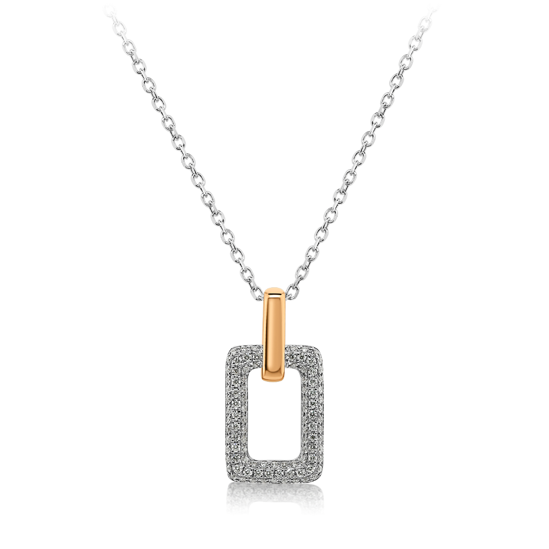 Lanț din aur alb de 18K și pandantiv încrustat cu 98 de Diamante naturale cu o greutate totală de 0.292ct.