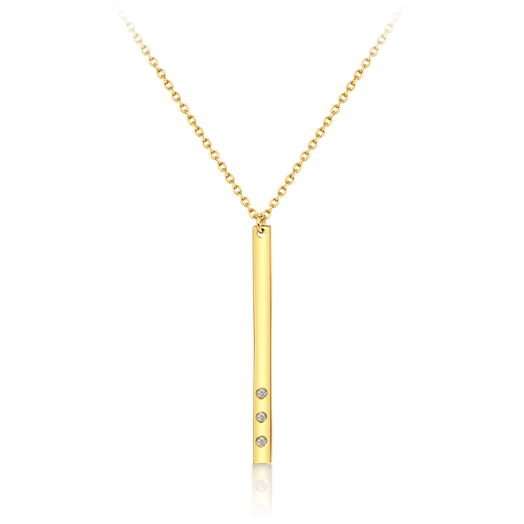 Lanț din aur galben de 14K și pandantiv cu 3 Diamante naturale Round Brilliant de 0.015ct.