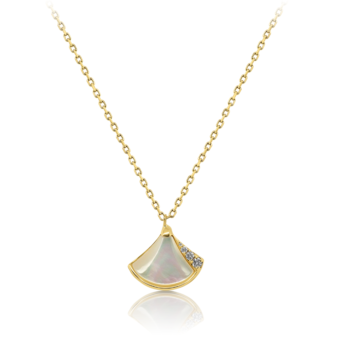 Lanț din aur galben de 14K și pandantiv cu Sidef și Diamante naturale.