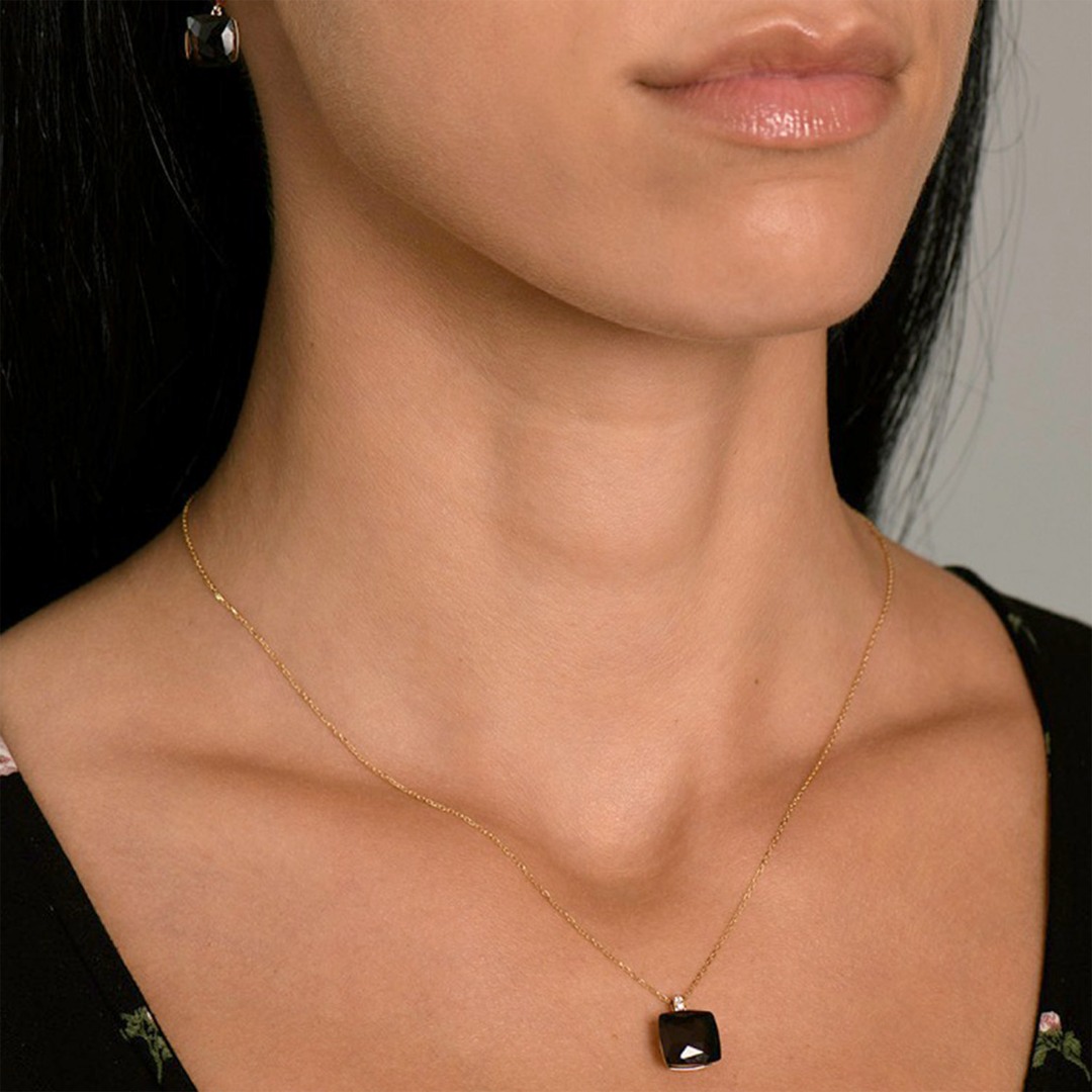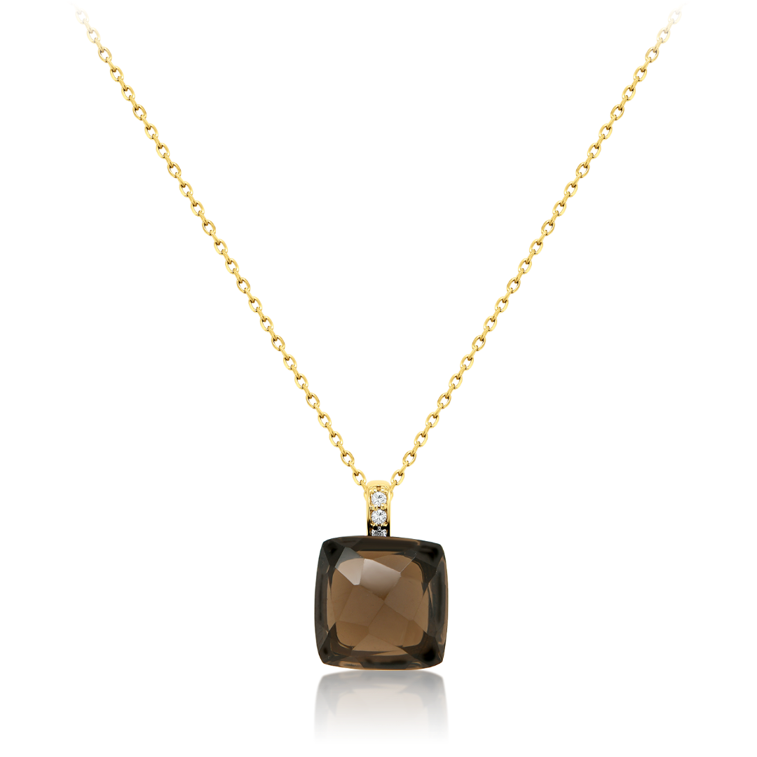 Lanț din aur galben de 18K, încrustat cu un Smoky Quartz de 5.22ct și Diamante naturale Round Brilliant de 0.024ct.