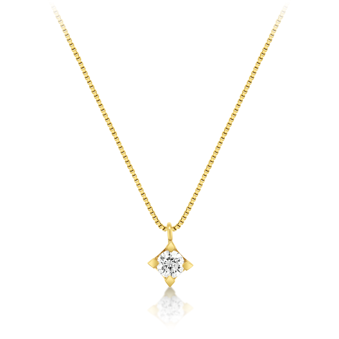 Lanț din aur galben de 18K si pandantiv cu un Diamant natural Round Briliiant de 0.15ct.
