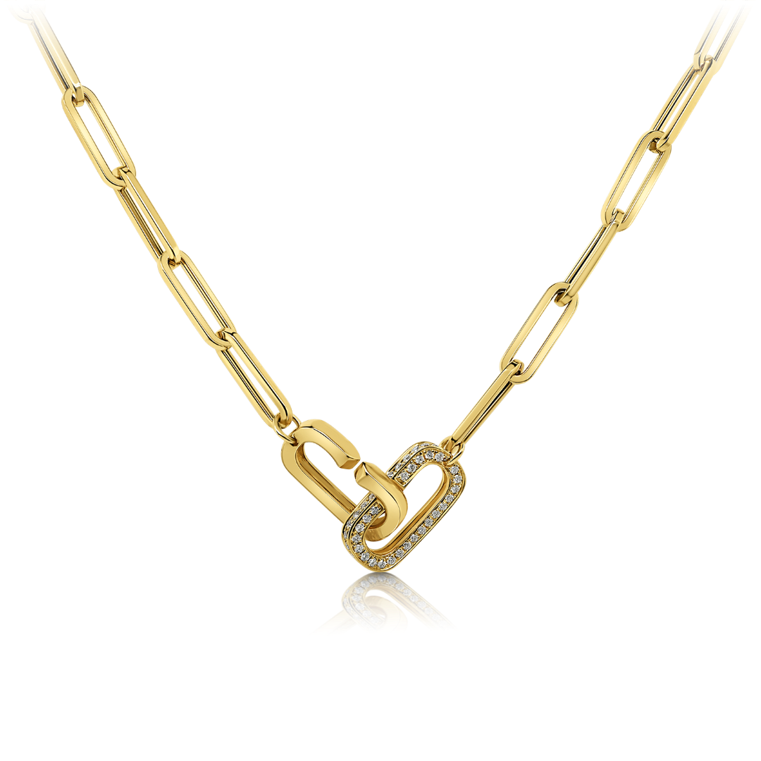 Lanț din aur galben de 14K și pandantiv cu Diamante naturale Round Brilliant de 0.30ct.