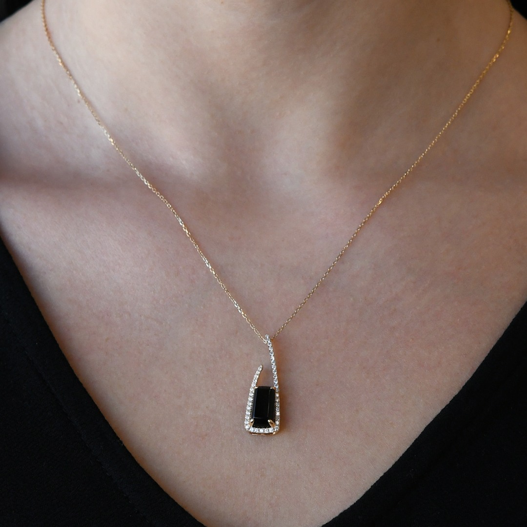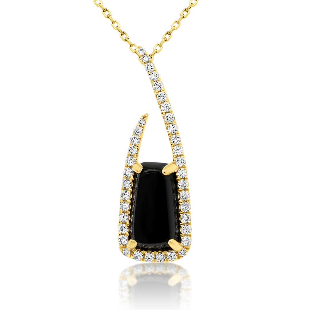 Lanț din aur galben de 18K și pandantiv cu Onix și Diamante naturale.