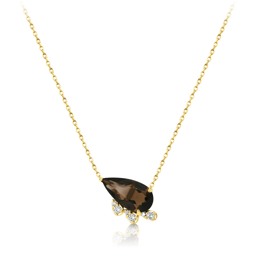 Lanț din aur galben de 18K și pandantiv cu Smoky Quartz și Diamante naturale.