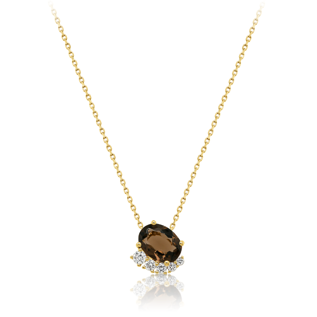Lanț din aur galben de 18K și pandantiv cu un Smoky Quartz de 1.09ct și 5 Diamante Round Brilliant de 0.137ct.