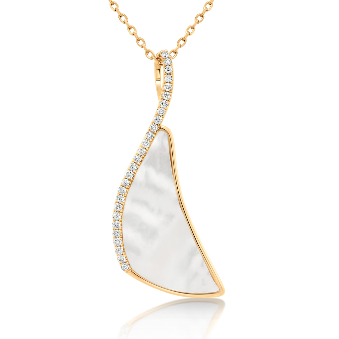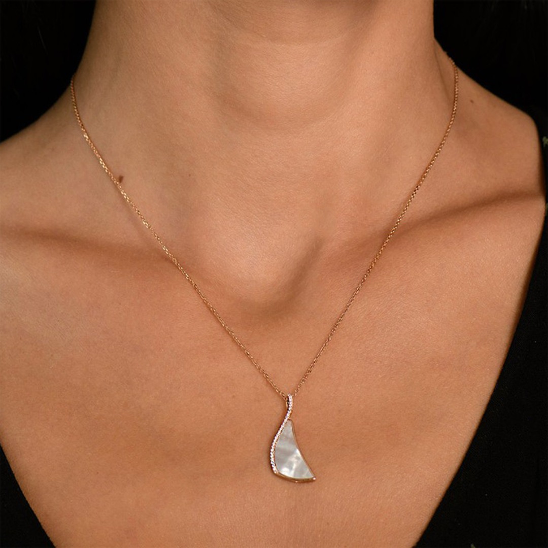 Lant din aur roz de 18K si pandantiv cu Sidef si Diamante naturale.