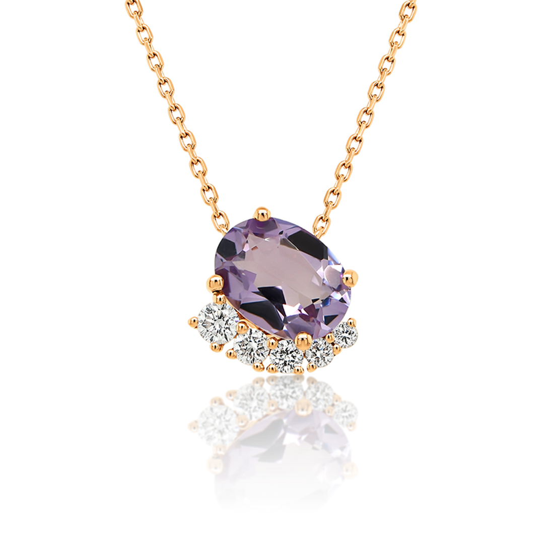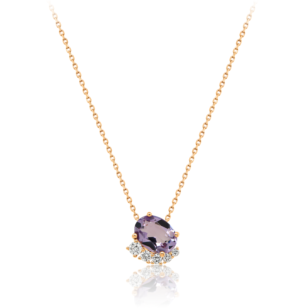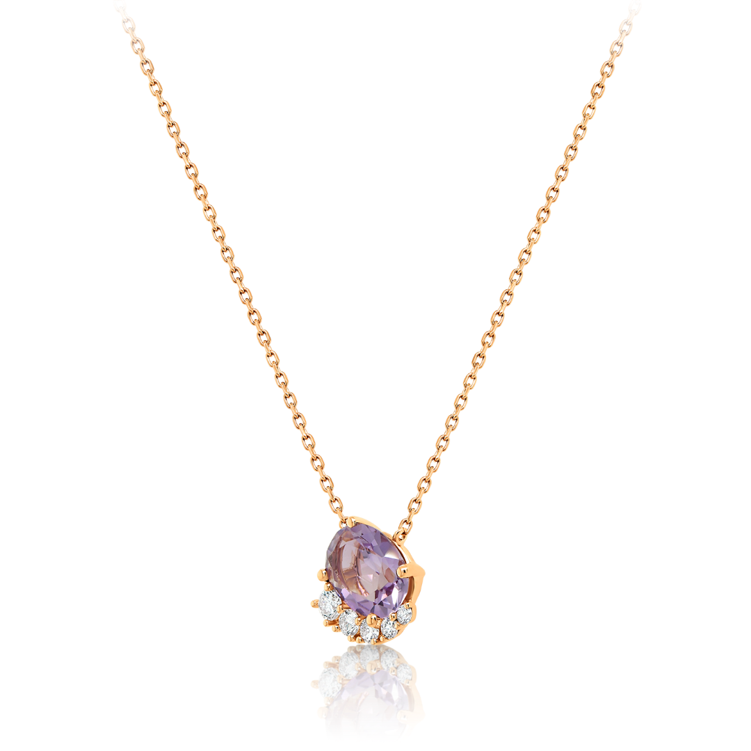Lanț din aur roz de 18K și pandantiv cu un Ametist de 0.98ct și 5 Diamante Round Brilliant de 0.137ct.