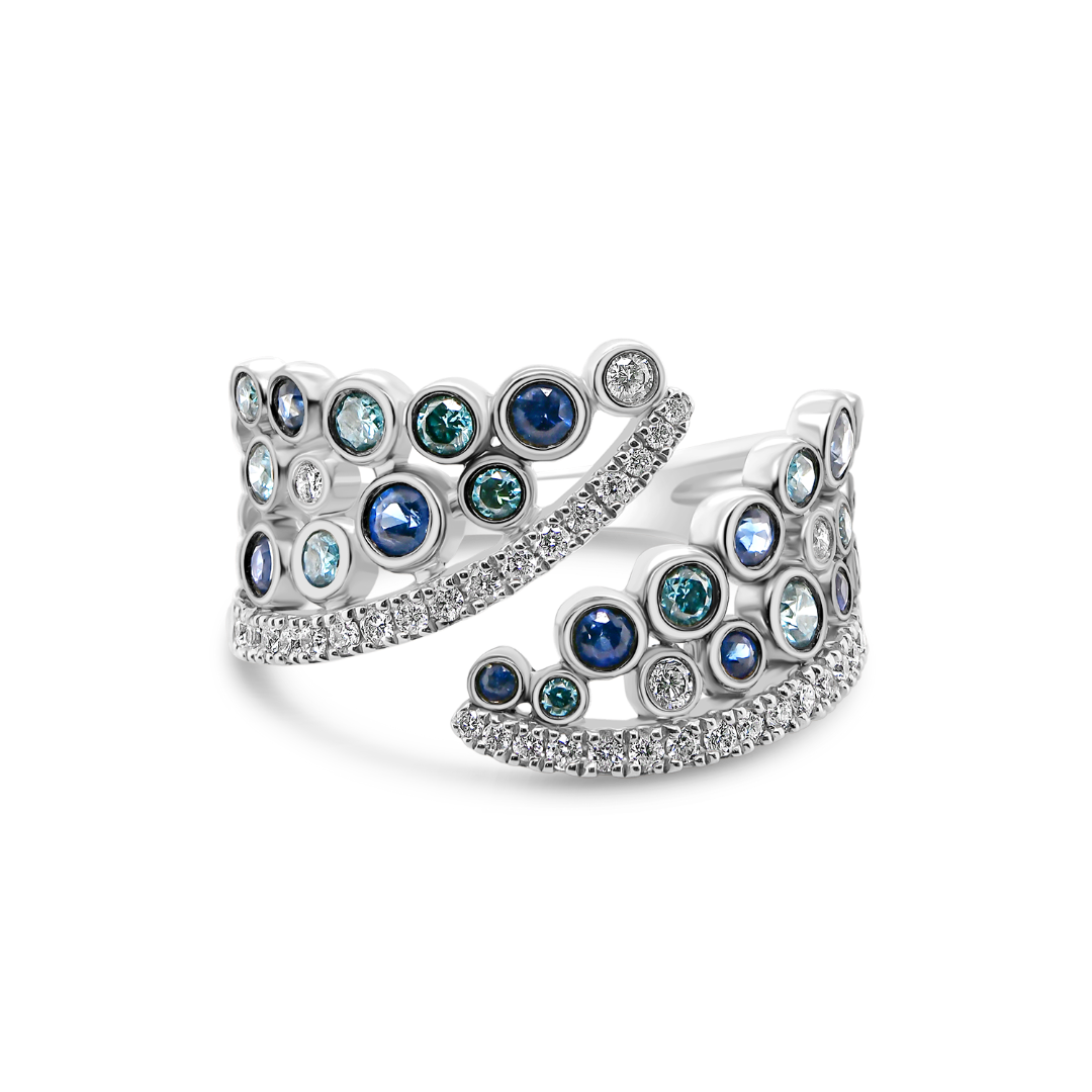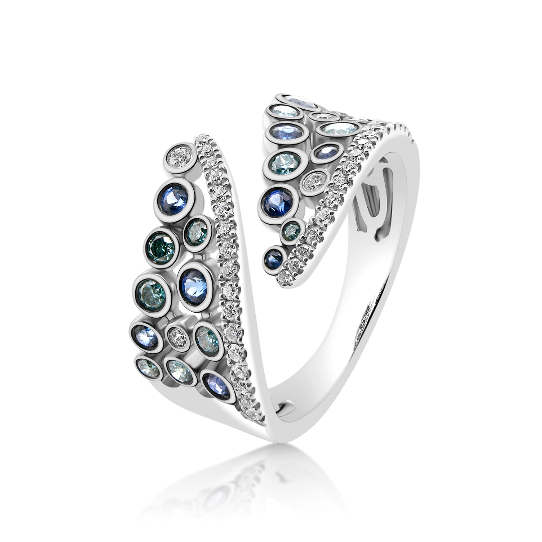 Inel din aur alb de 14K cu Diamante fancy naturale.