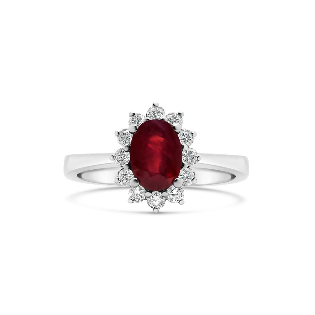 Inel din aur alb de 14K cu Rubin și Diamante naturale.