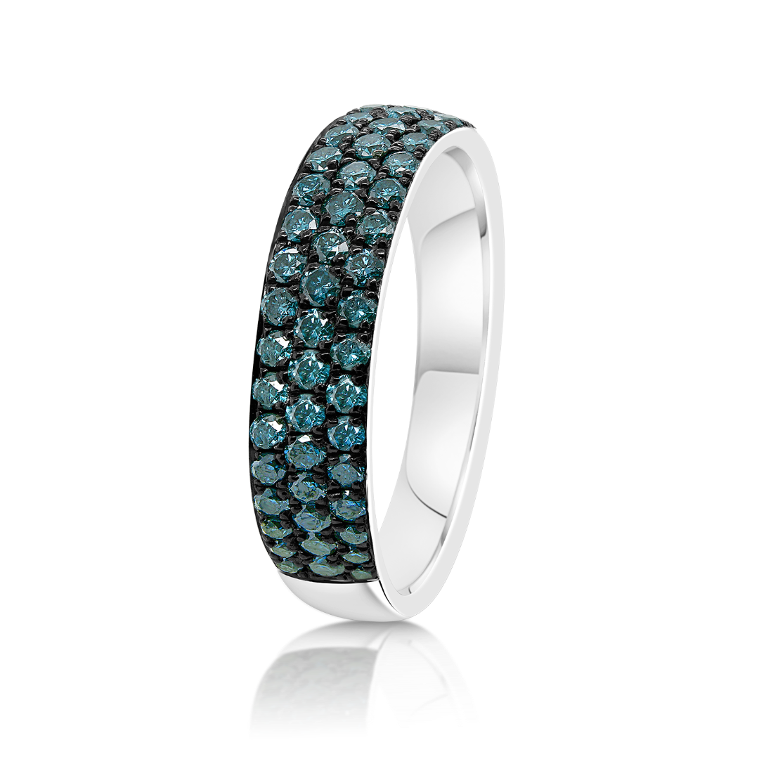 Inel din aur alb de 18K încrustat cu 59 de Diamante Ice Blue naturale.