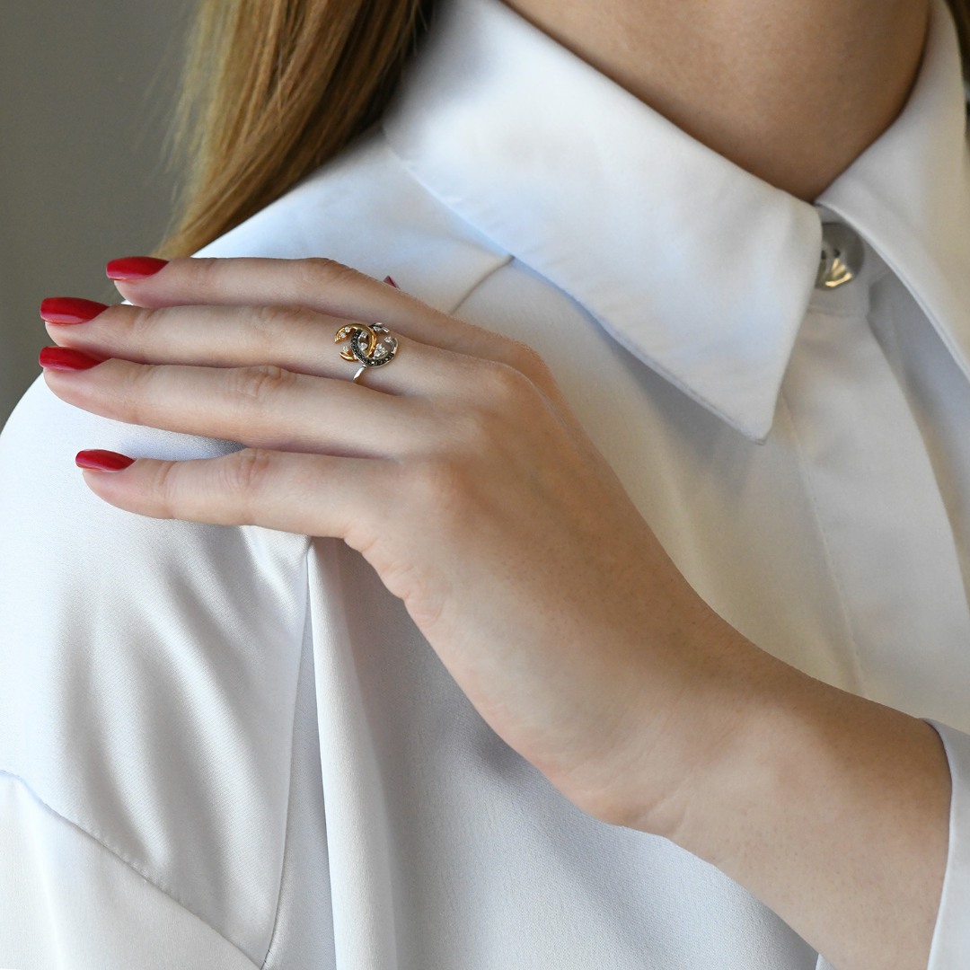 Inel din aur alb de 18K cu Diamante naturale și Rodiu negru.