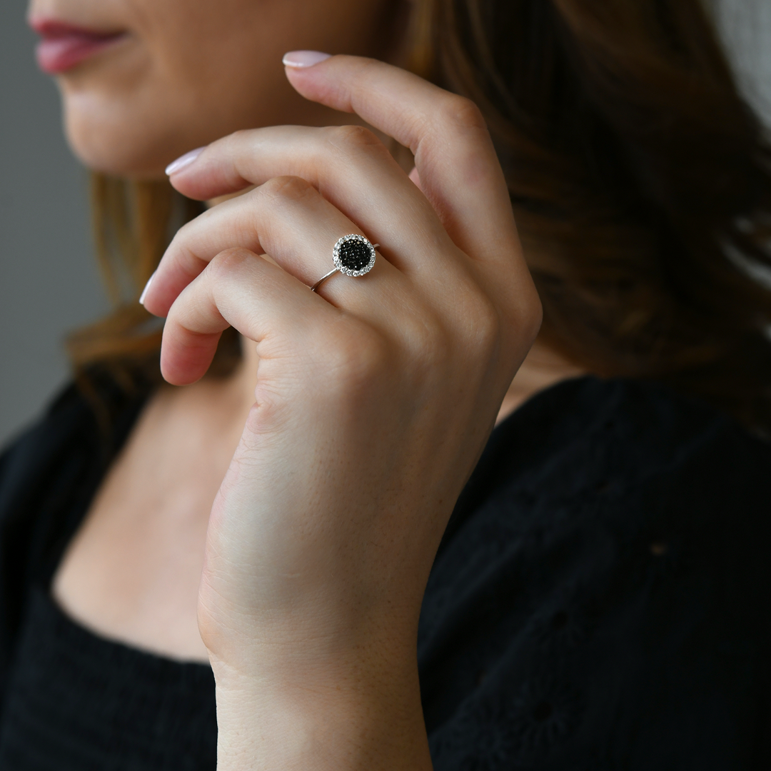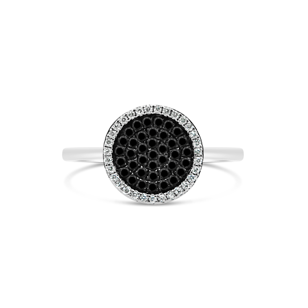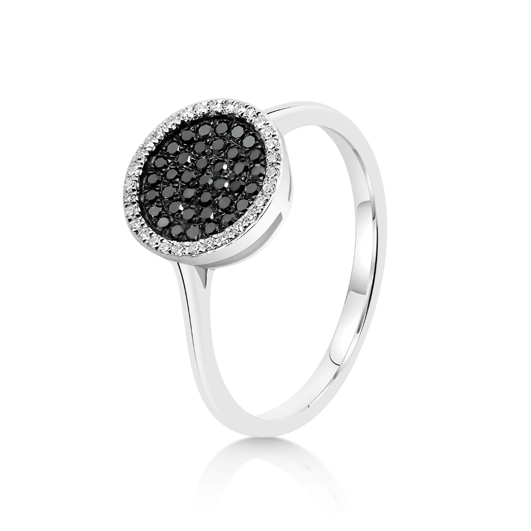 Inel din aur alb de 18K încrustat cu Diamante naturale negre și incolore.
