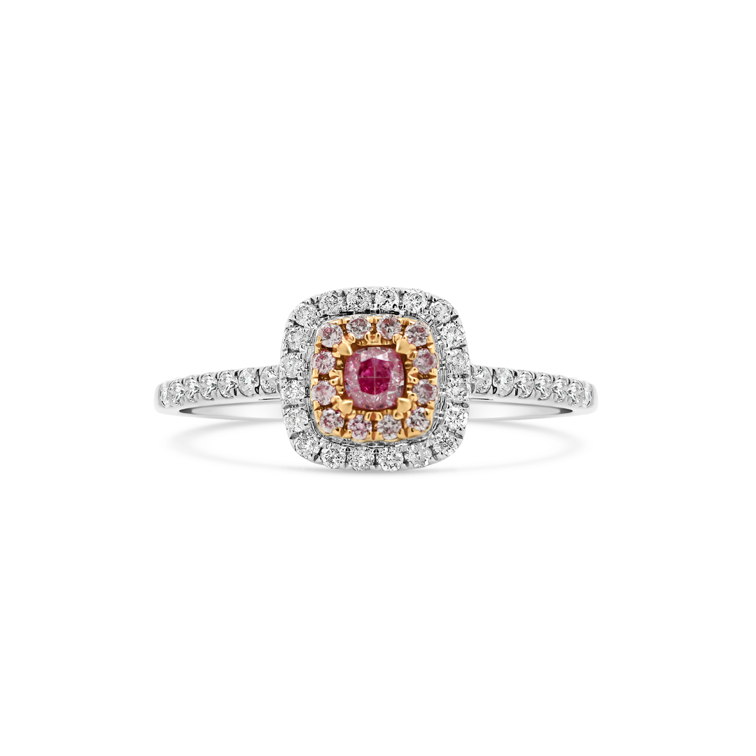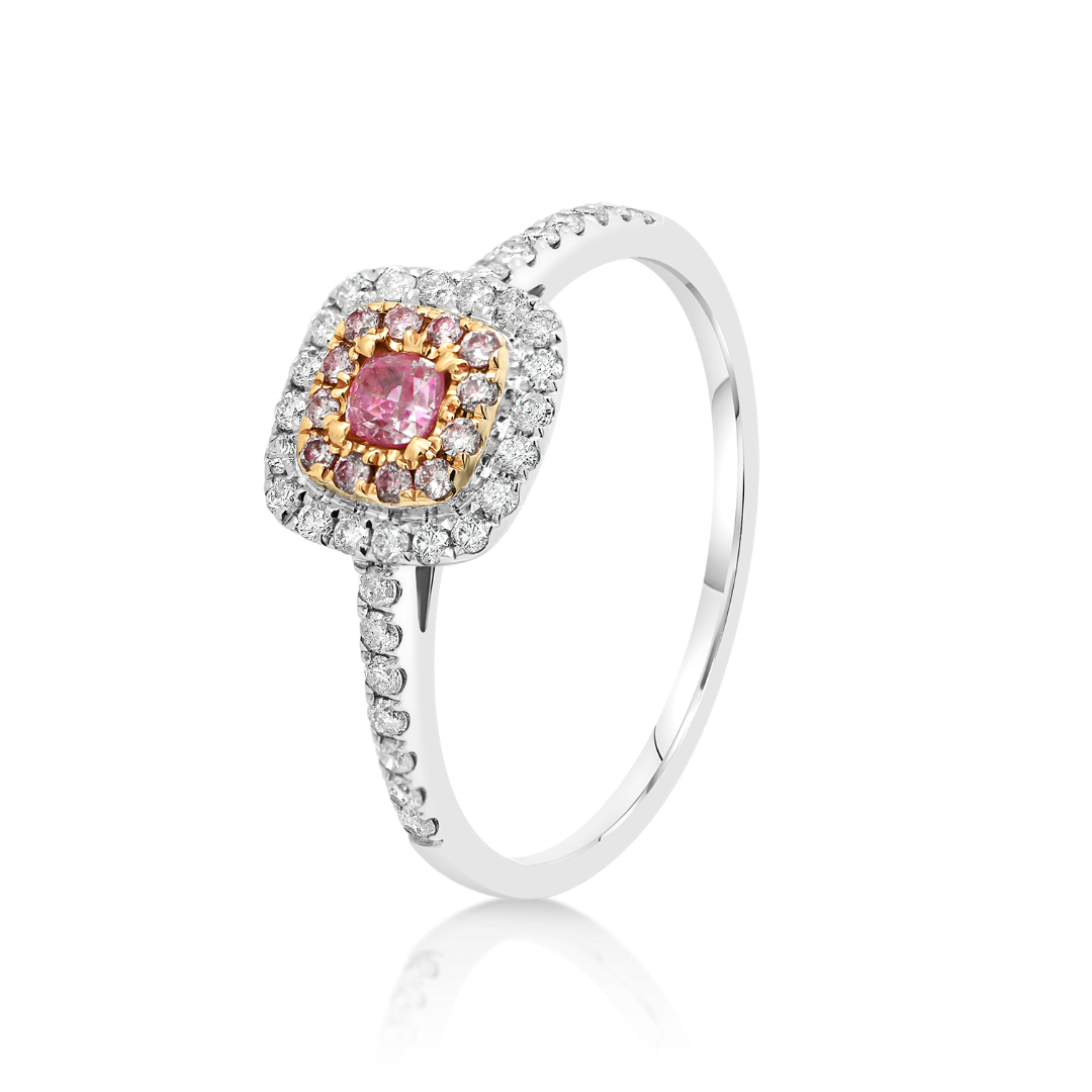 Inel de logodnă din aur alb de 18K cu Diamante naturale Fancy și incolore.