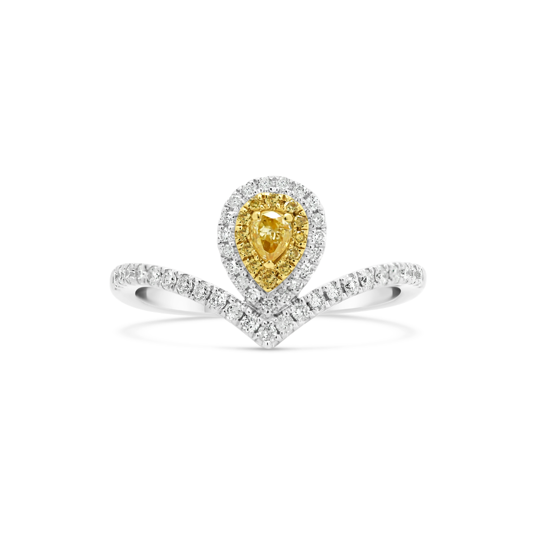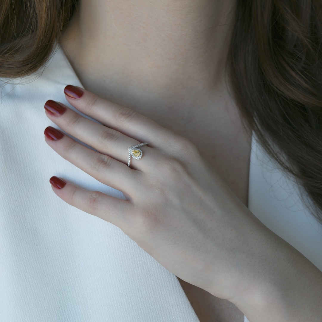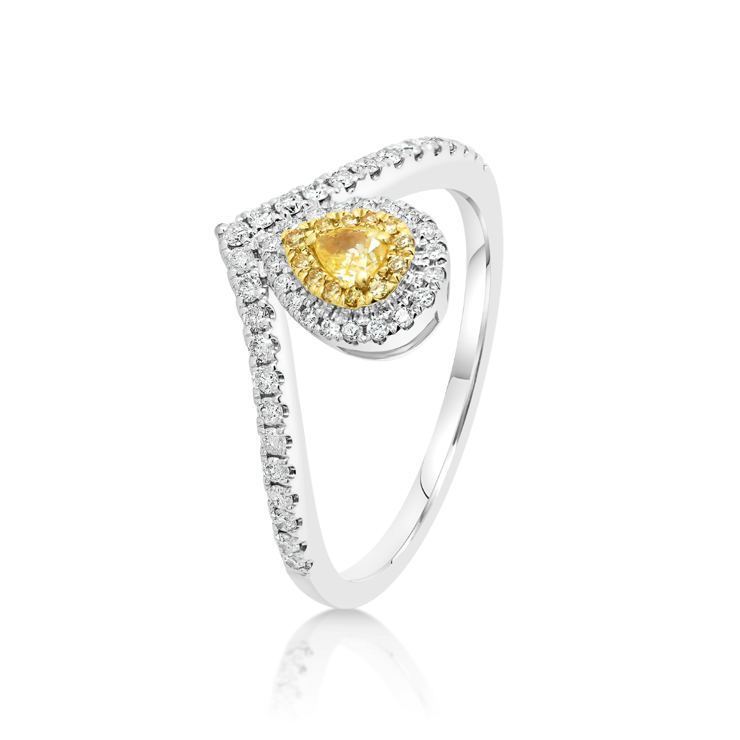 Inel din aur alb de 18K încrustat cu Diamante Fancy și incolore.