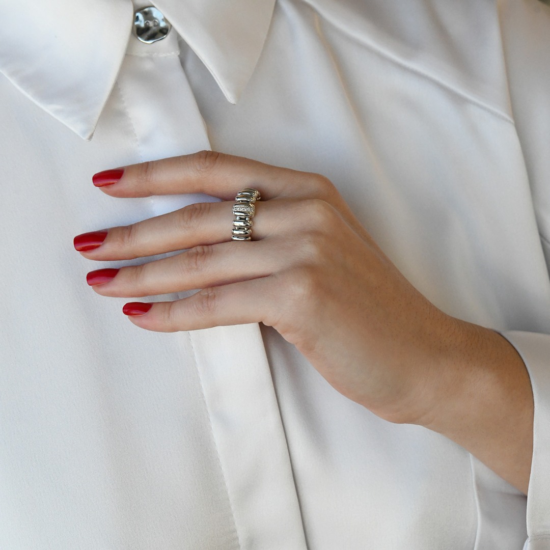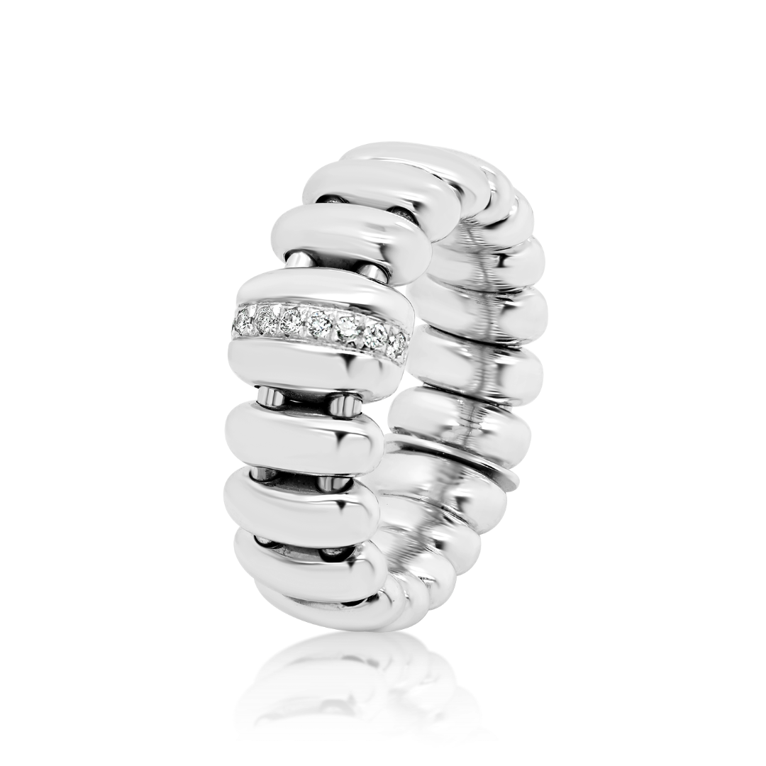 Inel cu design extensibil din aur alb de 18K și element încrustat cu Diamante naturale de 0.07ct.