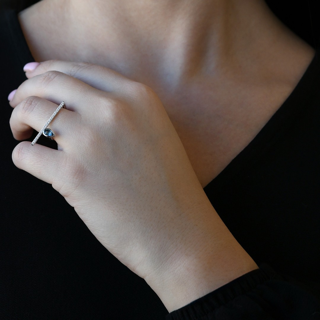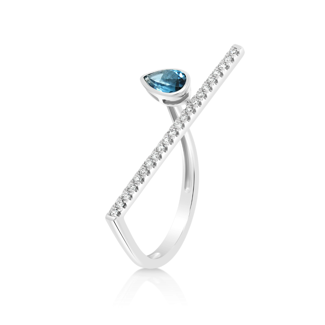 Inel din aur alb de 18K cu un London Blue Topaz de 0.385ct și 22 de Diamante Brilliant cut.