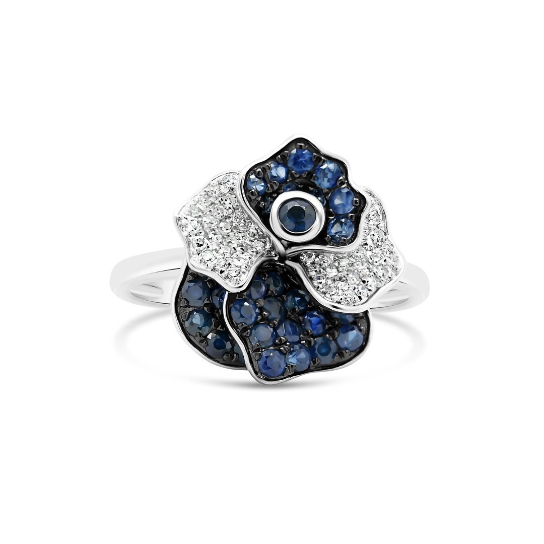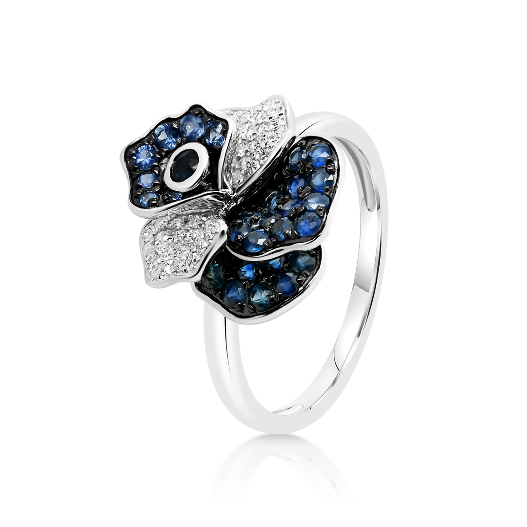 Inel din aur alb de 18K, încrustat cu 31 de Safire albastre și 51 de Diamante incolore Brilliant cut.