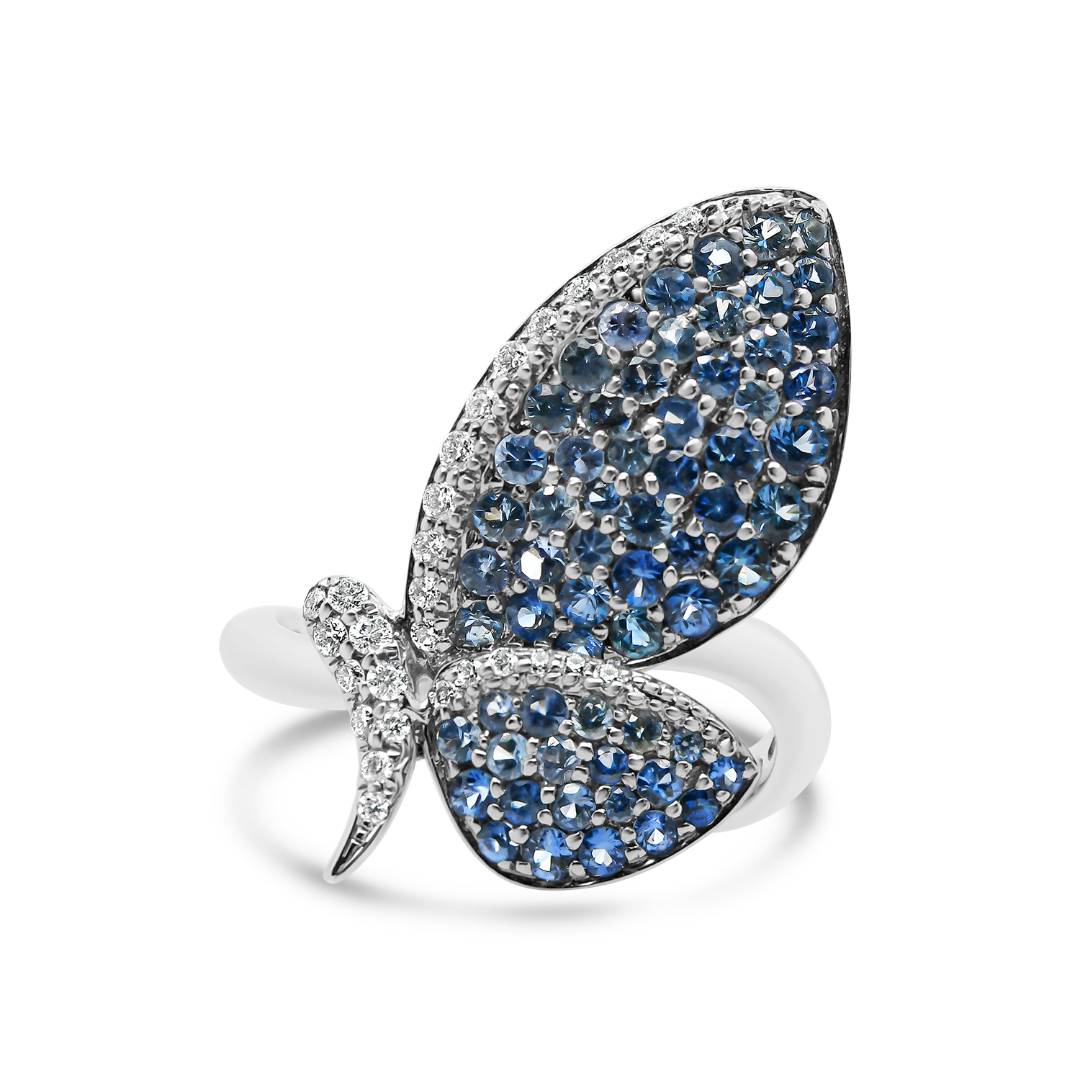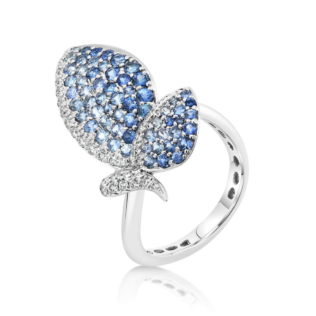 Inel din aur alb de 18K cu Safire și Diamante naturale.