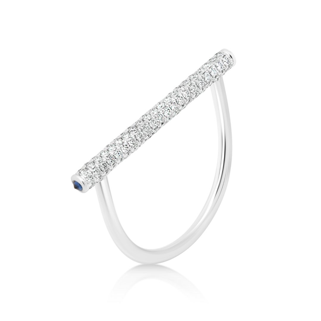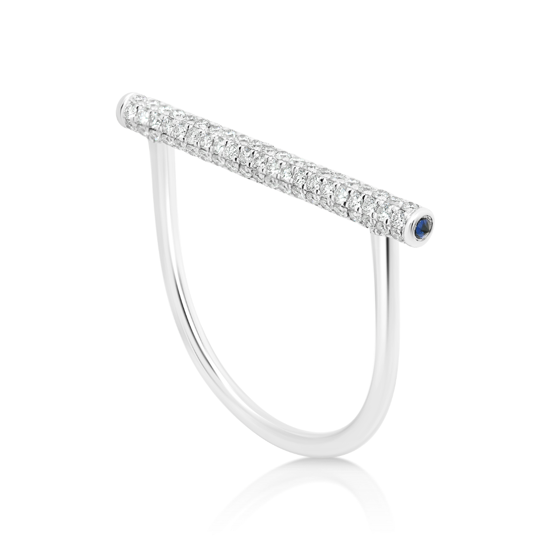 Inel din aur alb de 18K, încrustat cu două Safire albastre și 122 de Diamante incolore Brilliant cut.