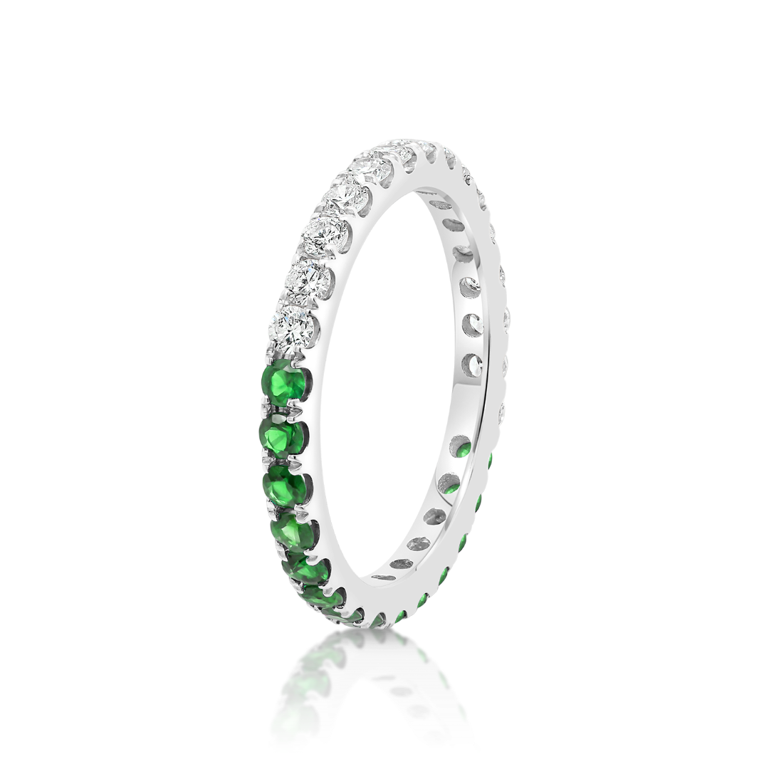 Inel Eternity din aur alb de 18K, cu 15 Tsavorite și 15 Diamante Brilliant cut.